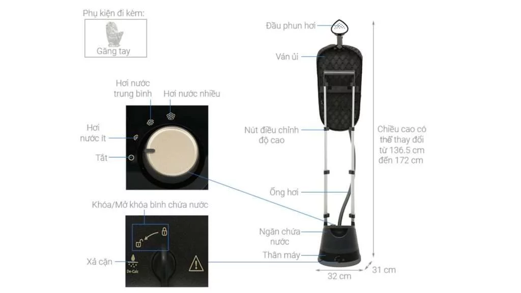Bên trong hộp, sản phẩm đi kèm găng tay bảo vệ, ván ủi tiện lợisách hướng dẫn sử dụng chi tiết, hỗ trợ người dùng làm quen nhanh chóng và đảm bảo an toàn khi sử dụng. Các bộ phận được thiết kế linh hoạt, dễ thao tác và dọn dẹp sau khi dùng.