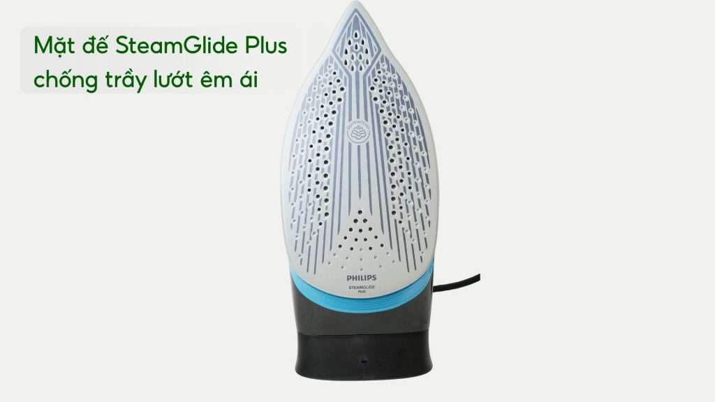Mặt đế bàn ủi được làm từ chất liệu SteamGlide Plus cao cấp, có độ bền cao, chống trầy xước và chống dính vượt trội. Điều này giúp bàn ủi lướt nhẹ nhàng trên quần áo, không gây hư hại hay kéo sợi vải, bảo vệ quần áo bền đẹp lâu dài và mang lại cảm giác dễ chịu khi sử dụng.