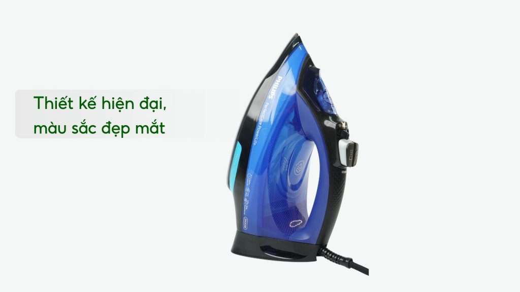 Philips GC3920/20 được thiết kế tinh tế với gam màu xanh đen hiện đại, tạo cảm giác sang trọng khi sử dụng. Tay cầm vừa vặn, có bề mặt chống trượt, giúp bạn cầm nắm chắc chắn và thoải mái trong quá trình ủi, tránh tình trạng mỏi tay khi phải ủi lâu.
