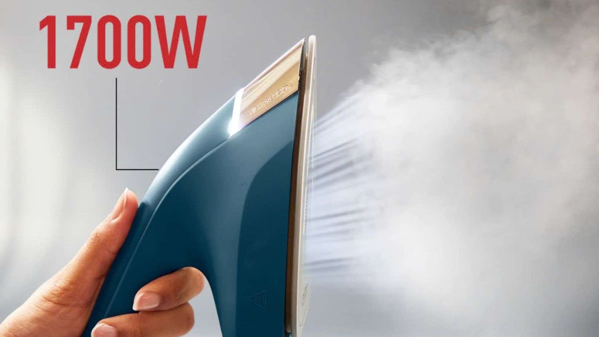 - Công suất 1850W mạnh mẽ giúp bàn ủi làm nóng nhanh, phun hơi nước đều và liên tục