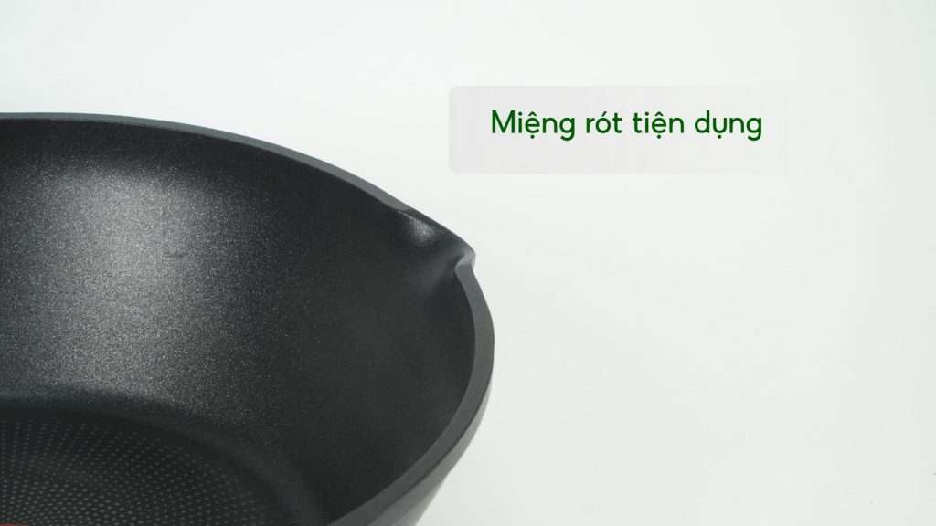 Lòng chảo sâu dung tích lớn giúp bạn thoải mái chiên xào rán từ khoai tây chiên giòn cho bé đến món gà xào sả ớt cho cả nhà. Lớp chống dính cao cấp cho phép nấu ăn với ít dầu hơn đồng thời dễ lau chùi giúp bạn tiết kiệm thời gian. Đặc biệt miệng rót đôi thông minh giúp đổ dầu thừa hoặc nước sốt mà không làm bừa bếp giữ không gian nấu nướng luôn gọn gàng.