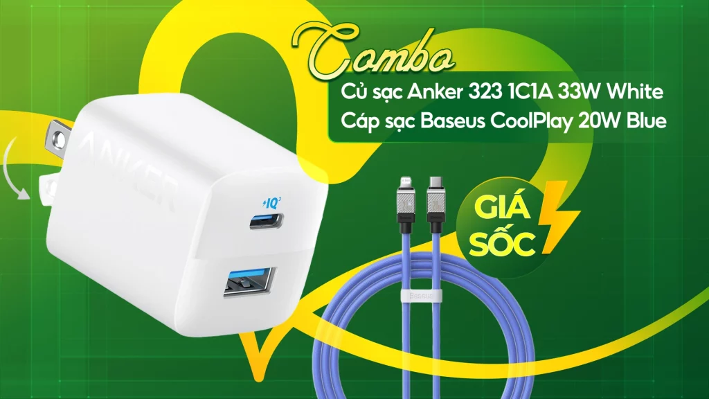 Bạn đang tìm kiếm một giải pháp sạc nhanh, bền bỉ và tương thích hoàn hảo với các thiết bị Apple? Combo Củ sạc Anker 323 33W + Cáp sạc Baseus CoolPlay Type-C chính là lựa chọn lý tưởng để nâng tầm trải nghiệm sạc của bạn. Với sự kết hợp giữa công nghệ tiên tiến và thiết kế bền bỉ, bộ đôi này không chỉ mang đến tốc độ sạc vượt trội mà còn đảm bảo an toàn và độ bền lâu dài cho iPhone, AirPods và nhiều thiết bị khác. Hãy cùng khám phá lý do vì sao combo này là phụ kiện không thể thiếu cho mọi tín đồ công nghệ.