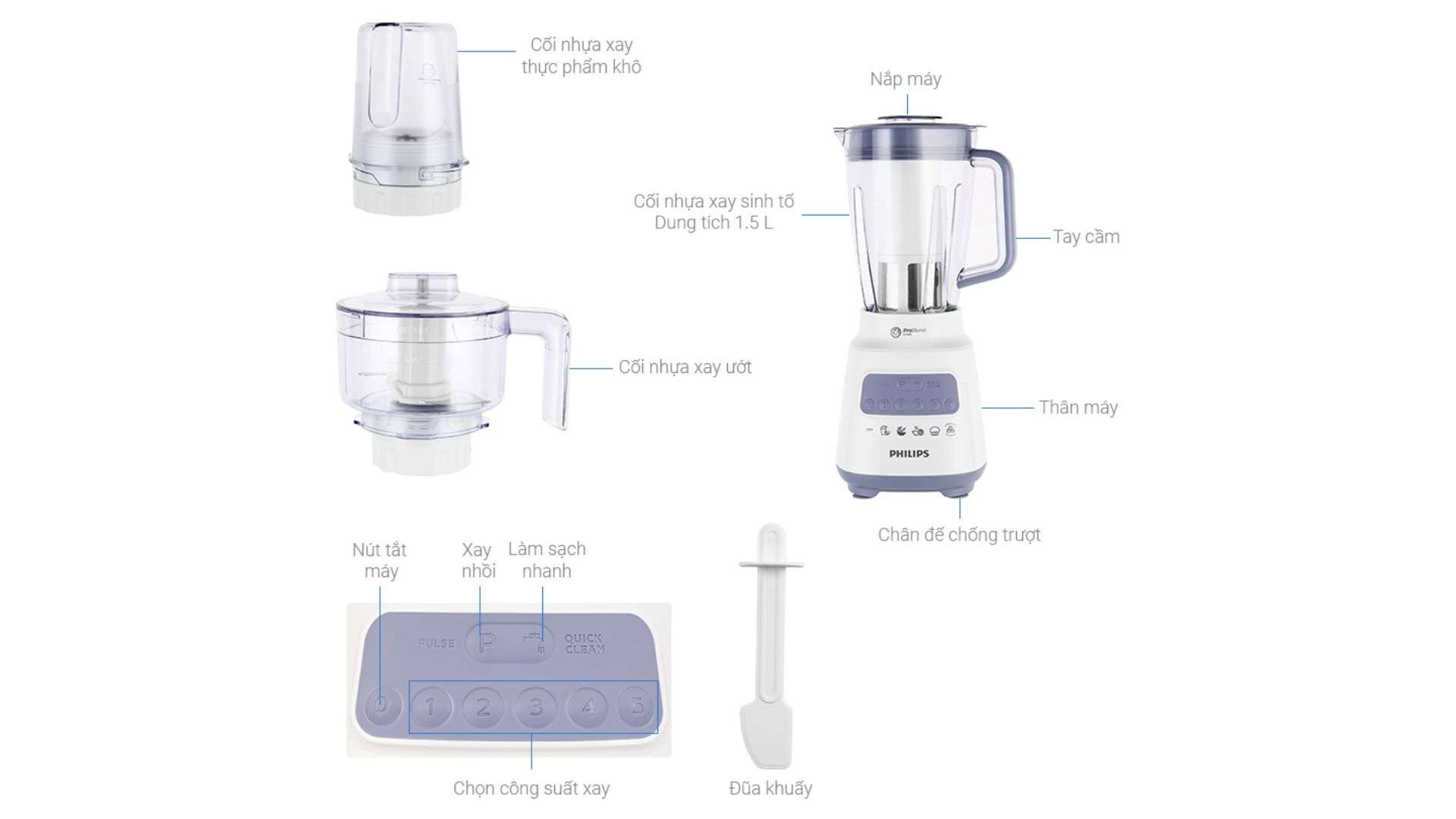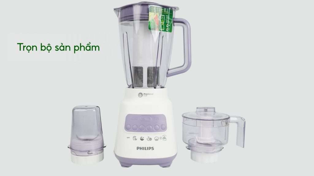 Máy xay sinh tố PHILIPS HR2223_00_Trắng và Tím Trọn bộ sản phẩm