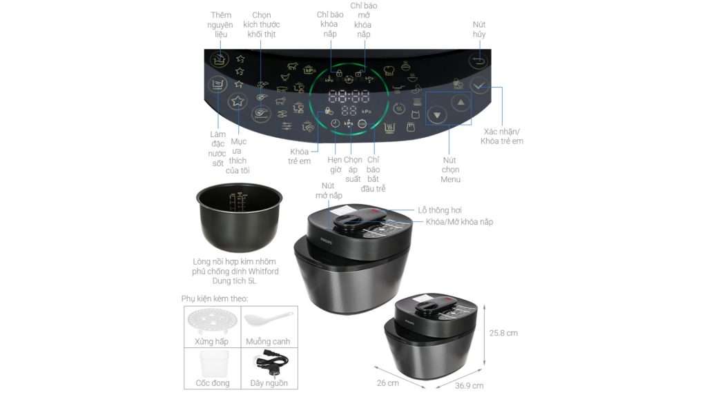 • 35 chương trình nấu, hỗ trợ đa dạng món ăn từ hầm đến chiên.