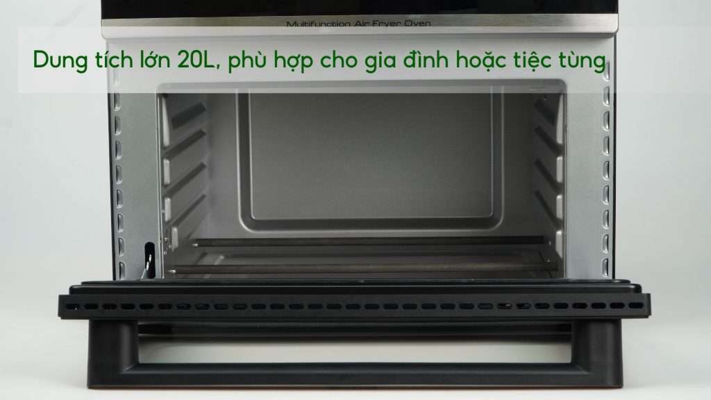 • Dung tích 20L (khoảng 2kg thực phẩm) hỗ trợ chế biến lượng lớn. Công nghệ khí nóng đối lưu và phụ kiện đa năng giúp chế biến linh hoạt, tiết kiệm công sức. Các đặc điểm này mang lại nấu ăn an toàn, lý tưởng cho gia đình đông người hoặc tiệc tùng.