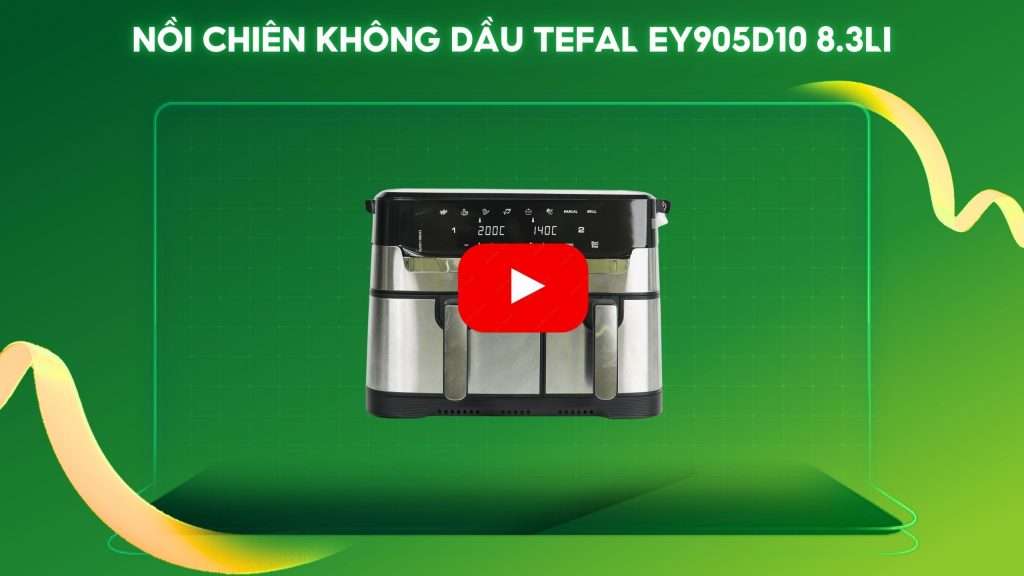 Trong thị trường nồi chiên không dầu, Tefal EY905D10 nổi bật nhờ dung tích 8.3L, công suất 2700W, 8 chương trình nấu và công nghệ Extra Crisp. Không như các nồi một ngăn hoặc công suất thấp, EY905D10 tích hợp hai ngăn nấu linh hoạt, màn hình cảm ứng và tiết kiệm năng lượng 70%. Thiết kế thép không gỉ sang trọng và an toàn vượt trội so với các sản phẩm thiếu linh hoạt. Sản xuất tại Trung Quốc theo tiêu chuẩn Pháp, EY905D10 là giải pháp nấu ăn nhanh đáng đầu tư.