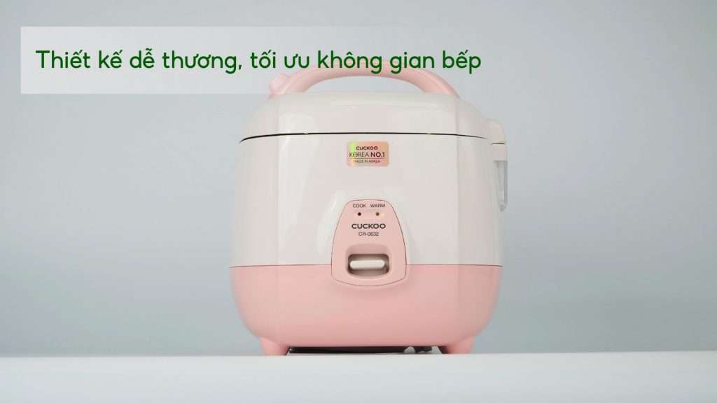 Một bát cơm tơi xốp, nóng hổi giúp bữa cơm gia đình nhỏ thêm ngon miệng và trọn vị. Nồi cơm điện Cuckoo 1.08L CR-0632 mang đến trải nghiệm nấu nướng nhanh chóng, tiện lợi. Với thiết kế dễ thương, cơ chế nhiệt 4 chiều, lòng nồi chống dính và tay cầm chắc chắn, sản phẩm này không chỉ là thiết bị bếp, mà còn là biểu tượng của phong cách sống tiện nghi, hiện đại.