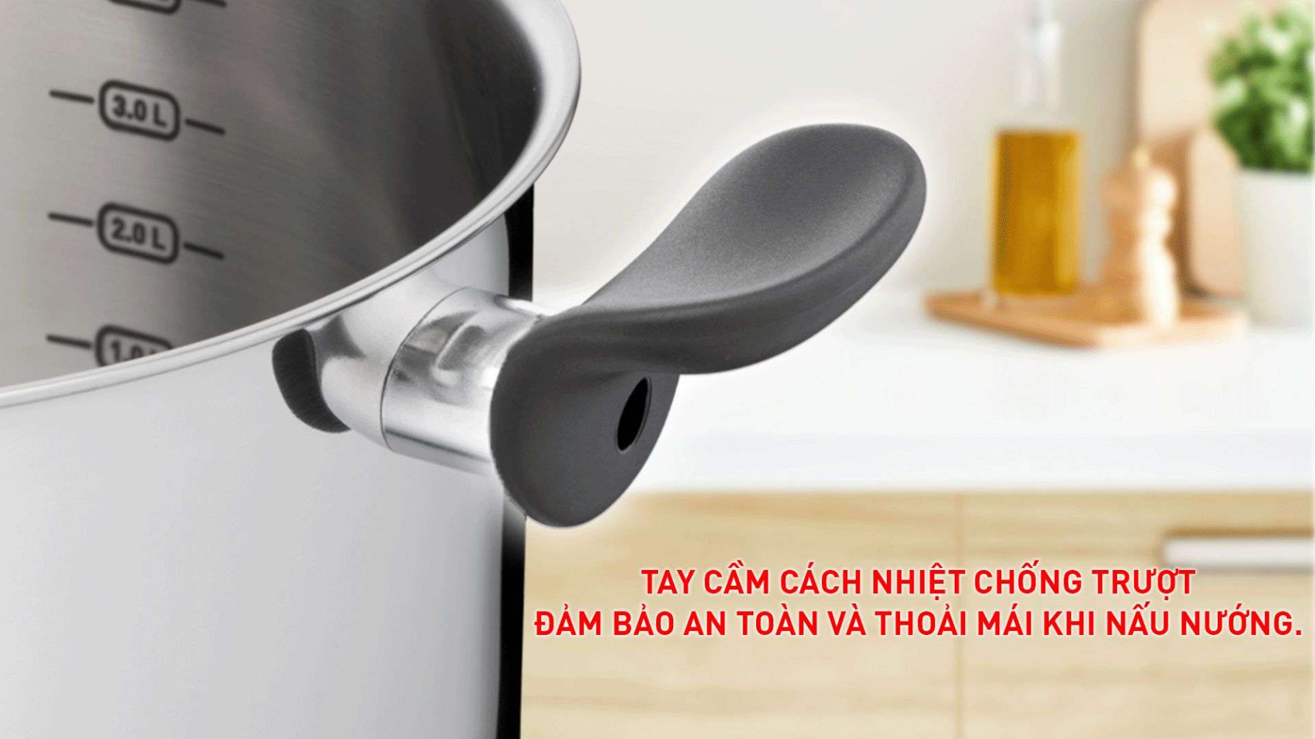 • Đế 3 lớp chống trượt, đảm bảo ổn định trên mọi bề mặt bếp.