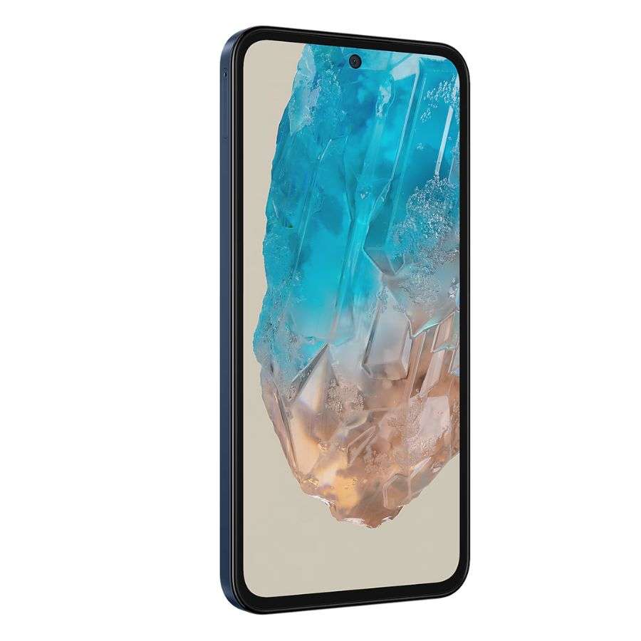 Galaxy M35 nổi bật với thiết kế hiện đại, cạnh bo cong mềm mại và cụm camera tối giản xếp thẳng hàng. Với trọng lượng 222g và kích thước 162.3 x 78.6 x 9.1 mm, máy mang lại cảm giác cầm nắm thoải mái, dễ dàng mang theo. Ba tùy chọn màu sắc thời thượng: Thunder Grey, DayBreak Blue, và Moonlight Blue giúp bạn thể hiện phong cách cá nhân. Thân máy sử dụng chất liệu nhựa polycarbonate cao cấp kết hợp với kính Gorilla Glass Victus+, đảm bảo độ bền mà vẫn giữ được vẻ ngoài tinh tế.