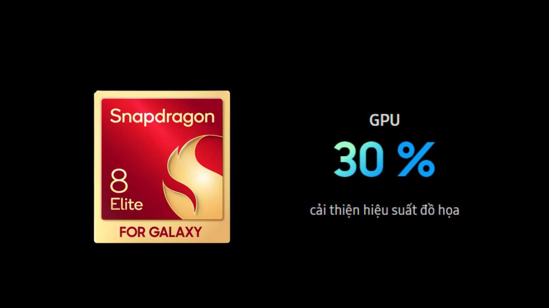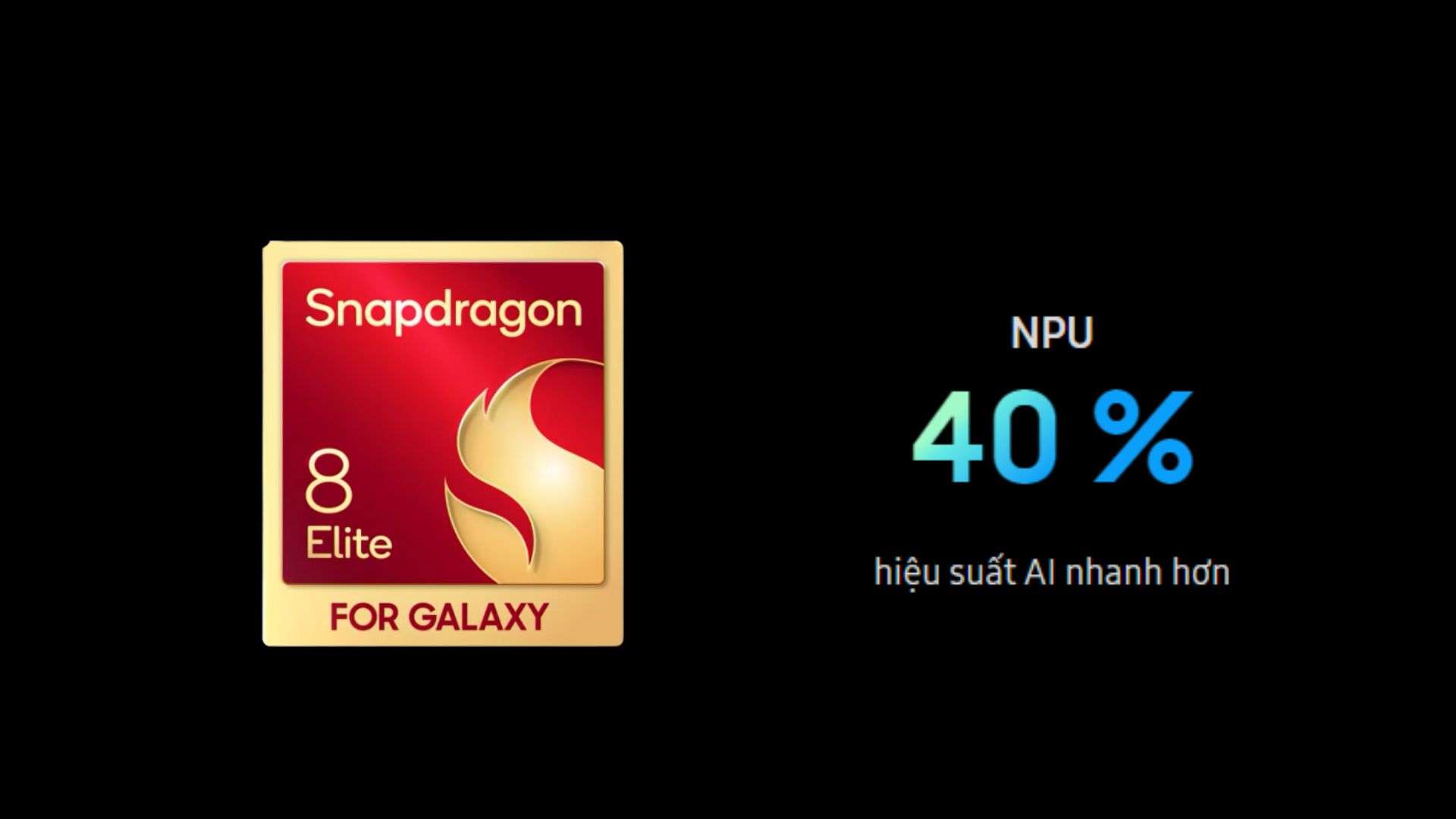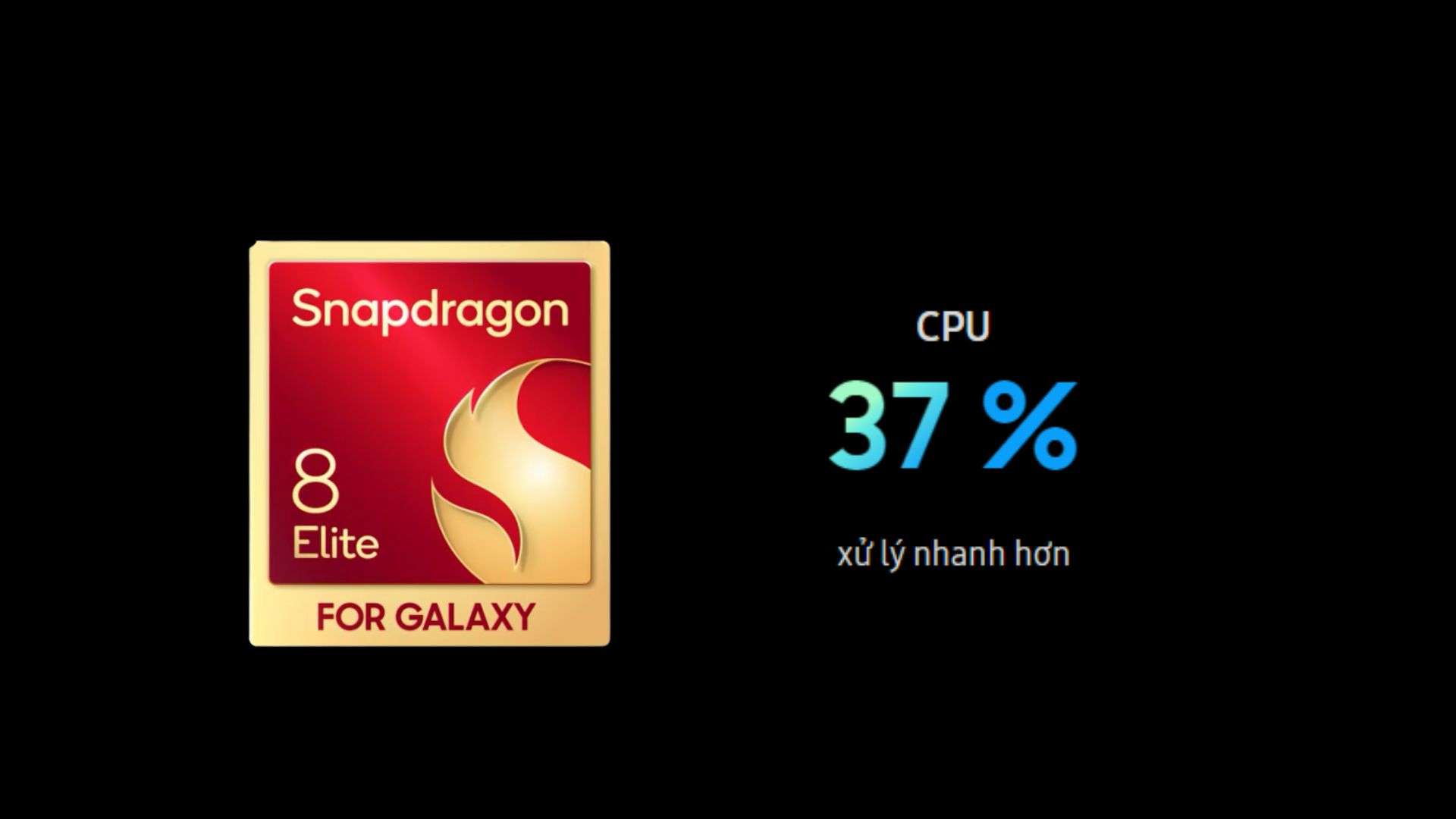 Snapdragon 8 Elite for Galaxy sử dụng công nghệ lõi Oryon thế hệ thứ 2, cho tốc độ xử lý nhanh hơn tới 37% so với Snapdragon 8 Gen 3 for Galaxy. Điều này có nghĩa là mọi tác vụ, từ mở ứng dụng, lướt web đến xử lý các công việc nặng đều sẽ mượt mà và nhanh chóng hơn. Ví dụ, nếu bạn cần chỉnh sửa video, chơi game đồ họa cao, hoặc mở nhiều ứng dụng cùng lúc, Snapdragon 8 Elite sẽ xử lý tốt hơn.