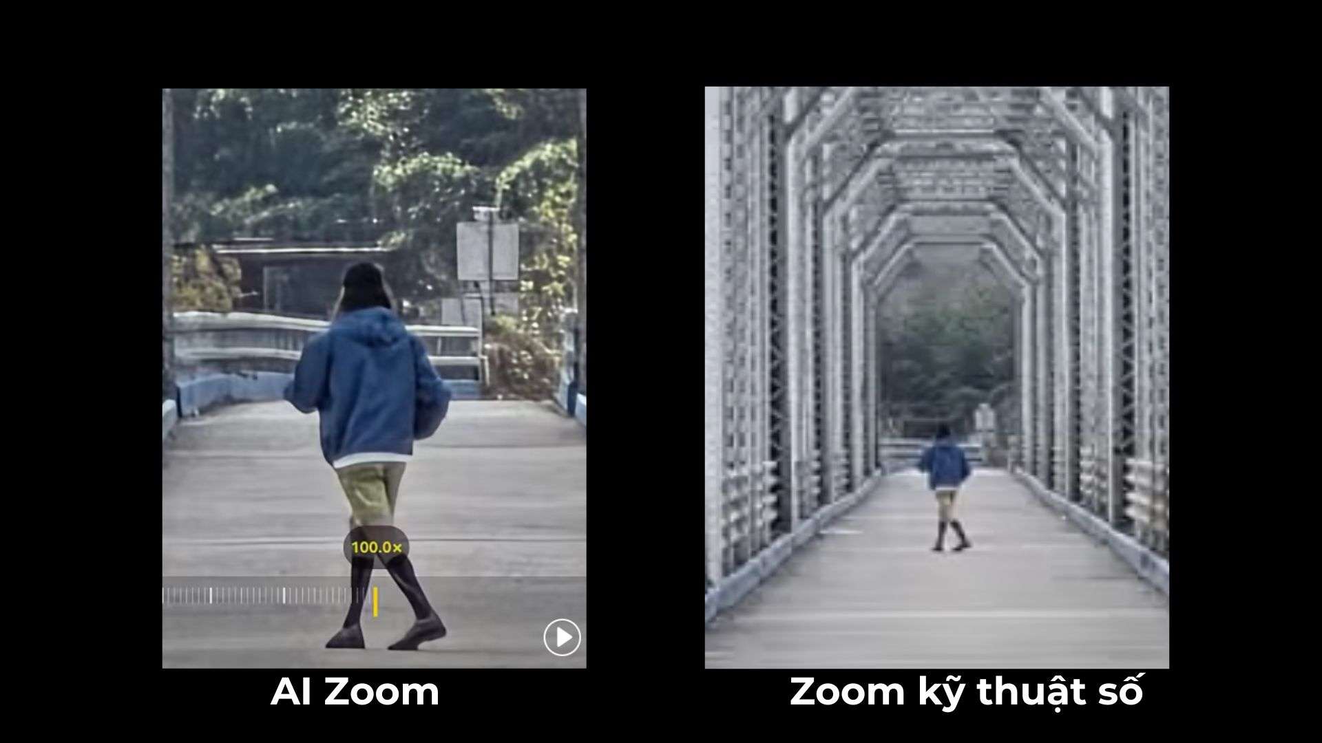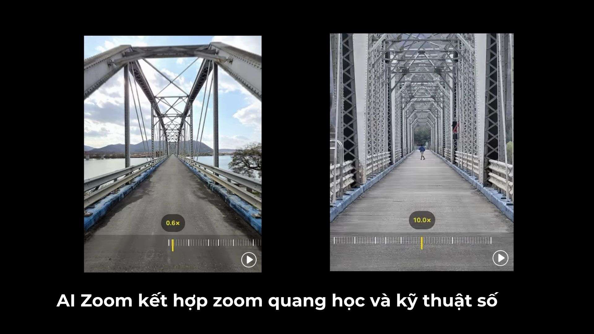 - Khi zoom vượt quá giới hạn quang học như 10x, AI Zoom sẽ kết hợp với zoom kỹ thuật số để tiếp tục phóng to mà vẫn thể hiện tương đối rõ các đối tượngt.