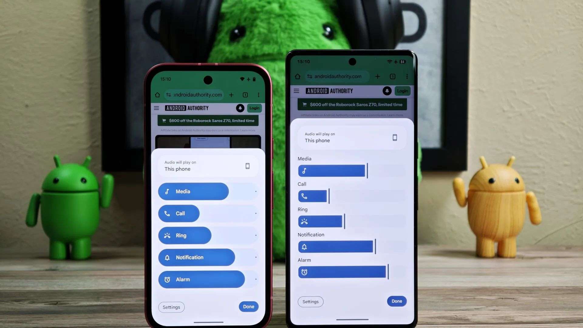 Thanh điều chỉnh âm lượng trên Android 16 cũng được làm mới với thiết kế thanh mảnh hơn, có tay cầm rõ ràng, thay thế cho các thanh trượt hình viên thuốc dày dặn của Android 15. Không chỉ có giao diện chính, thanh trượt âm lượng xuất hiện khi nhấn phím vật lý cũng được tinh chỉnh để gọn gàng hơn, phù hợp với phong cách tối giản của Material Design 3 Expressive.