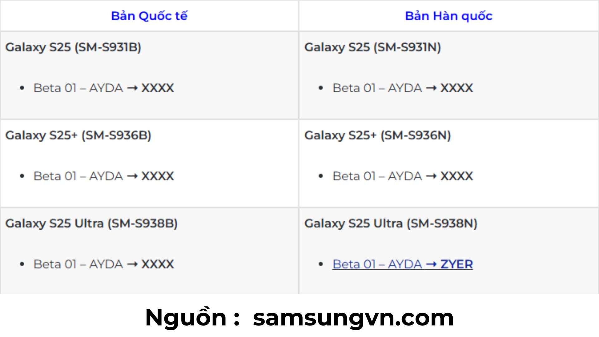 - Kiểm tra mã model: Hướng dẫn này áp dụng cho các thiết bị Galaxy S25 Series chính hãng Việt Nam (mã SM-S93xB, ví dụ: SM-S938B cho S25 Ultra). Máy từ các thị trường như Mỹ, Hàn Quốc hoặc Trung Quốc có mã khác và không áp dụng cách này.