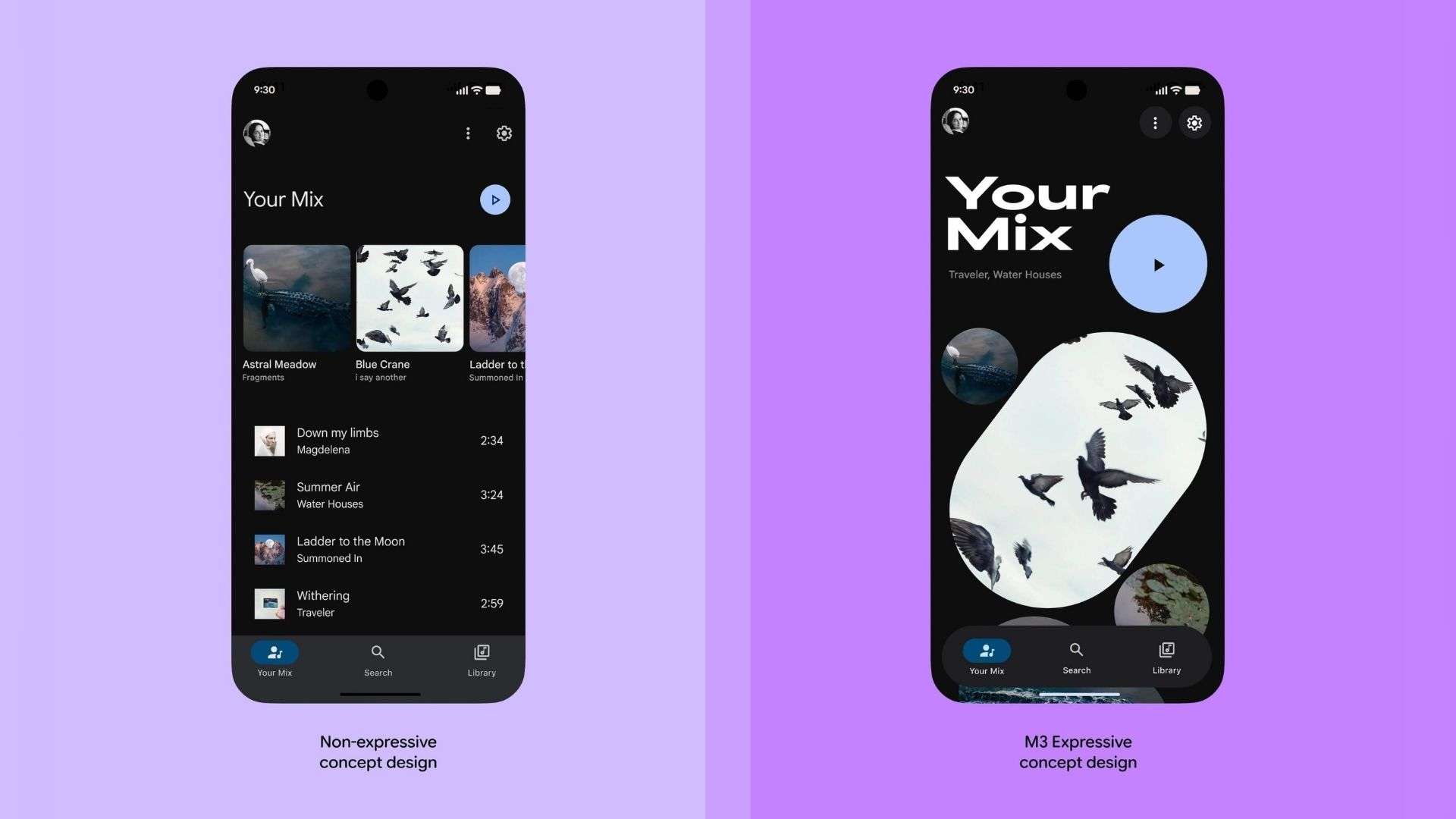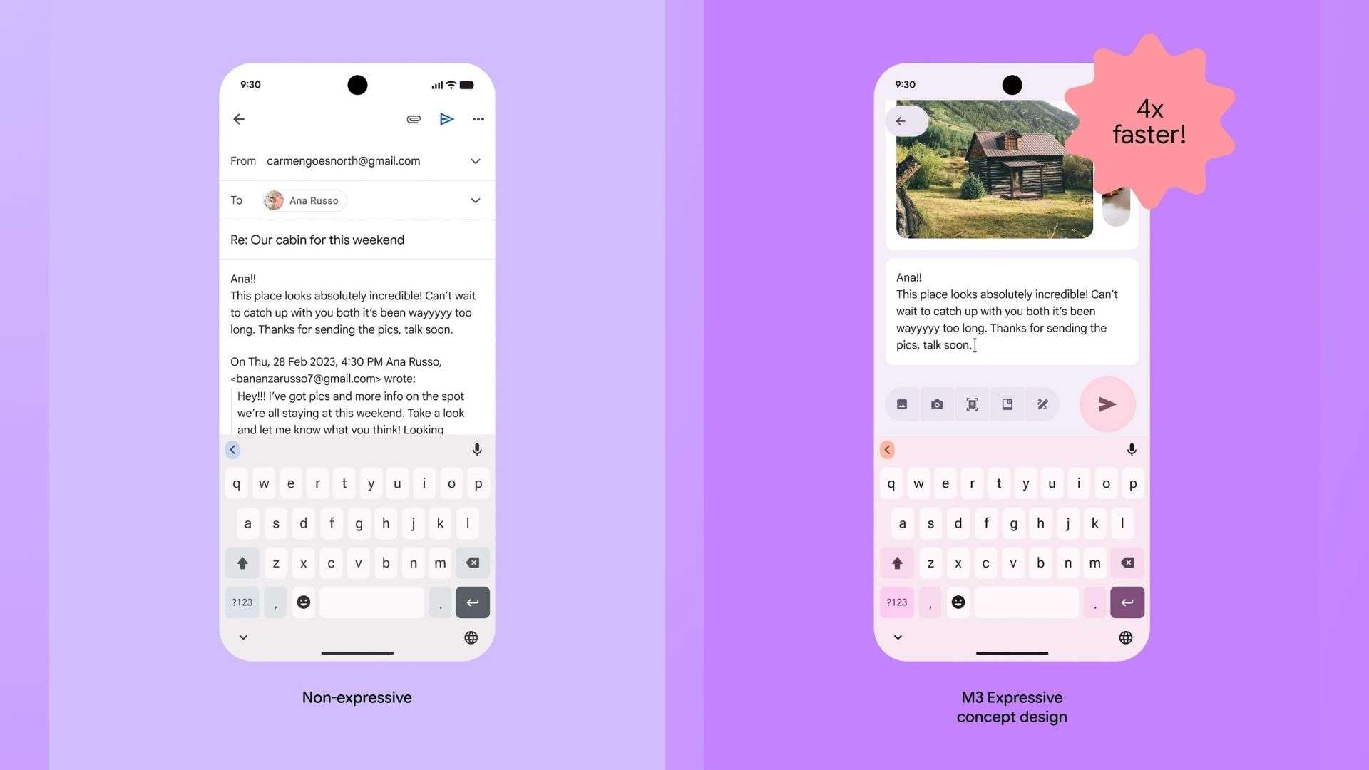 Giao diện mới sử dụng các nút bấm lớn hơn, màu sắc nổi bật và hiệu ứng chuyển động mượt mà. Ví dụ, các hình ảnh rò rỉ từ ứng dụng Gmail cho thấy sự khác biệt rõ rệt giữa giao diện hiện tại và phiên bản concept của Material 3 Expressive, với bố cục gọn gàng và dễ nhìn hơn.