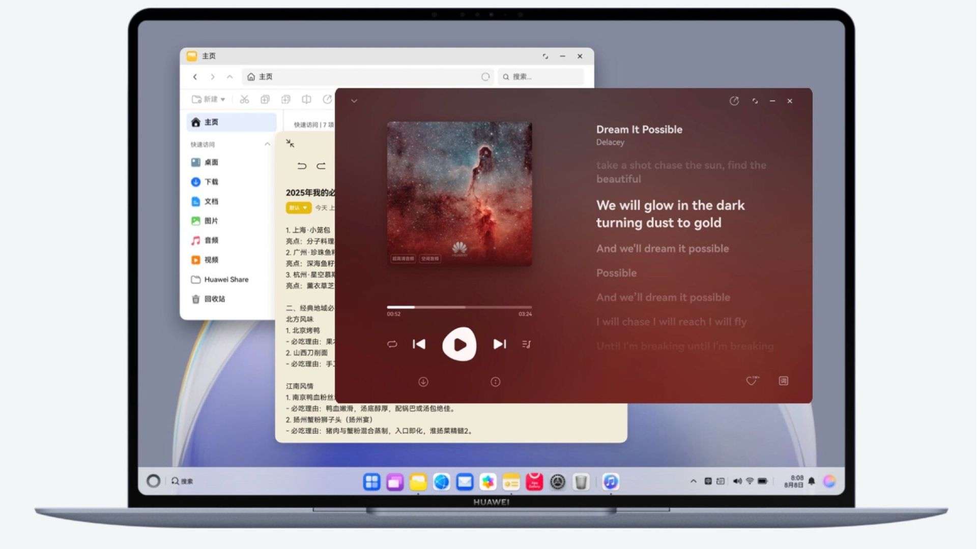 Hệ điều hành hỗ trợ mở nhiều cửa sổ ứng dụng cùng lúc, kéo thả linh hoạt và thay đổi kích thước cửa sổ, mang đến trải nghiệm đa nhiệm vượt trội. Widget “Super Device” cho phép ghép nối thiết bị bằng cách kéo thả, ví dụ như chuyển âm thanh từ điện thoại sang tai nghe chỉ trong tích tắc.
