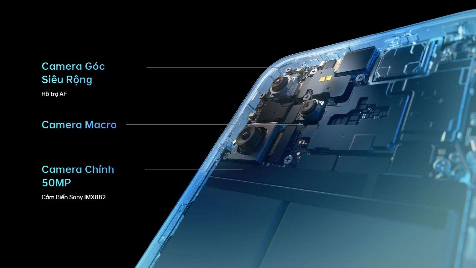 - Camera chính 50MP (cảm biến Sony IMX882, f/1.8, hỗ trợ PDAF).