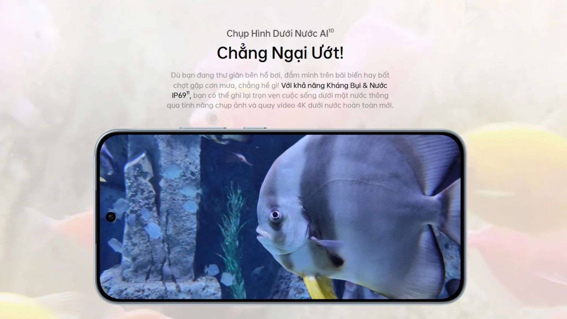 Về trải nghiệm cầm nắm, máy có độ mỏng 7.78mm và nặng 180g, nhẹ hơn nhiều so với các đối thủ cùng phân khúc có pin lớn. Khung viền nhôm phẳng và mặt lưng kính cường lực được gia công tỉ mỉ, cho cảm giác chắc chắn nhưng không trơn trượt. Điểm nhấn là khả năng chống nước và bụi đạt chuẩn IP69, IP68, IP66, cho phép ngâm nước ở độ sâu 1.5m trong 30 phút hoặc chịu áp lực nước mạnh mà không hư hỏng. Điều này đặc biệt hữu ích khi sử dụng ngoài trời hoặc trong môi trường ẩm ướt.