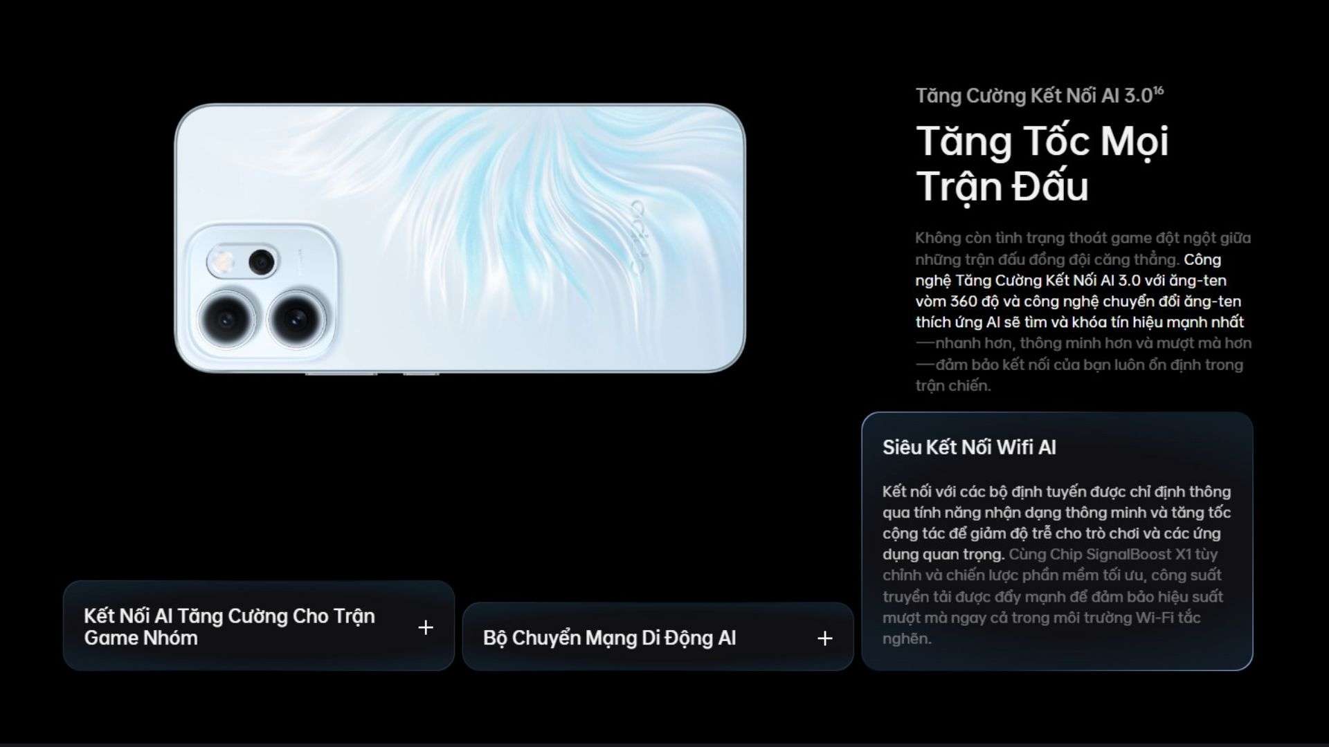 Oppo Reno14 F hỗ trợ 5G NR trên các băng tần phổ biến tại Việt Nam đảm bảo tốc độ tải xuống và tải lên vượt trội. Trong môi trường 5G ổn định, tốc độ tải có thể đạt 1.5Gbps, lý tưởng cho streaming 4K hoặc tải tệp lớn. Wi-Fi 6 và Bluetooth 5.3 mang lại kết nối không dây nhanh, ổn định, với độ trễ thấp khi dùng tai nghe không dây.