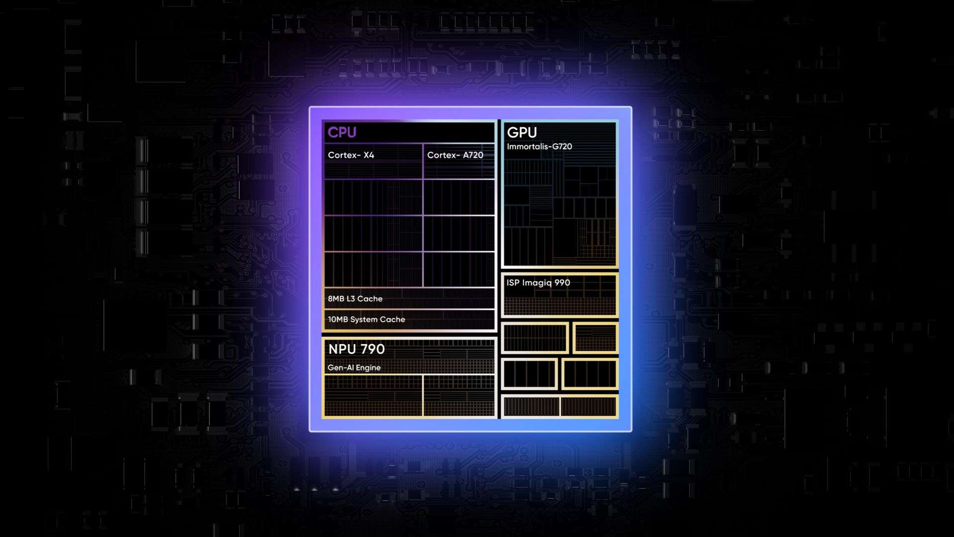 GPU Immortalis-G720 MC12 xung nhịp lên tới 1300MHz được thiết kế để tối ưu hóa đồ họa với hỗ trợ công nghệ ray tracing và HDR10+. GPU này có hiệu suất đồ họa tăng 15% so với thế hệ trước, giúp tái tạo hình ảnh chi tiết và mượt mà hơn.