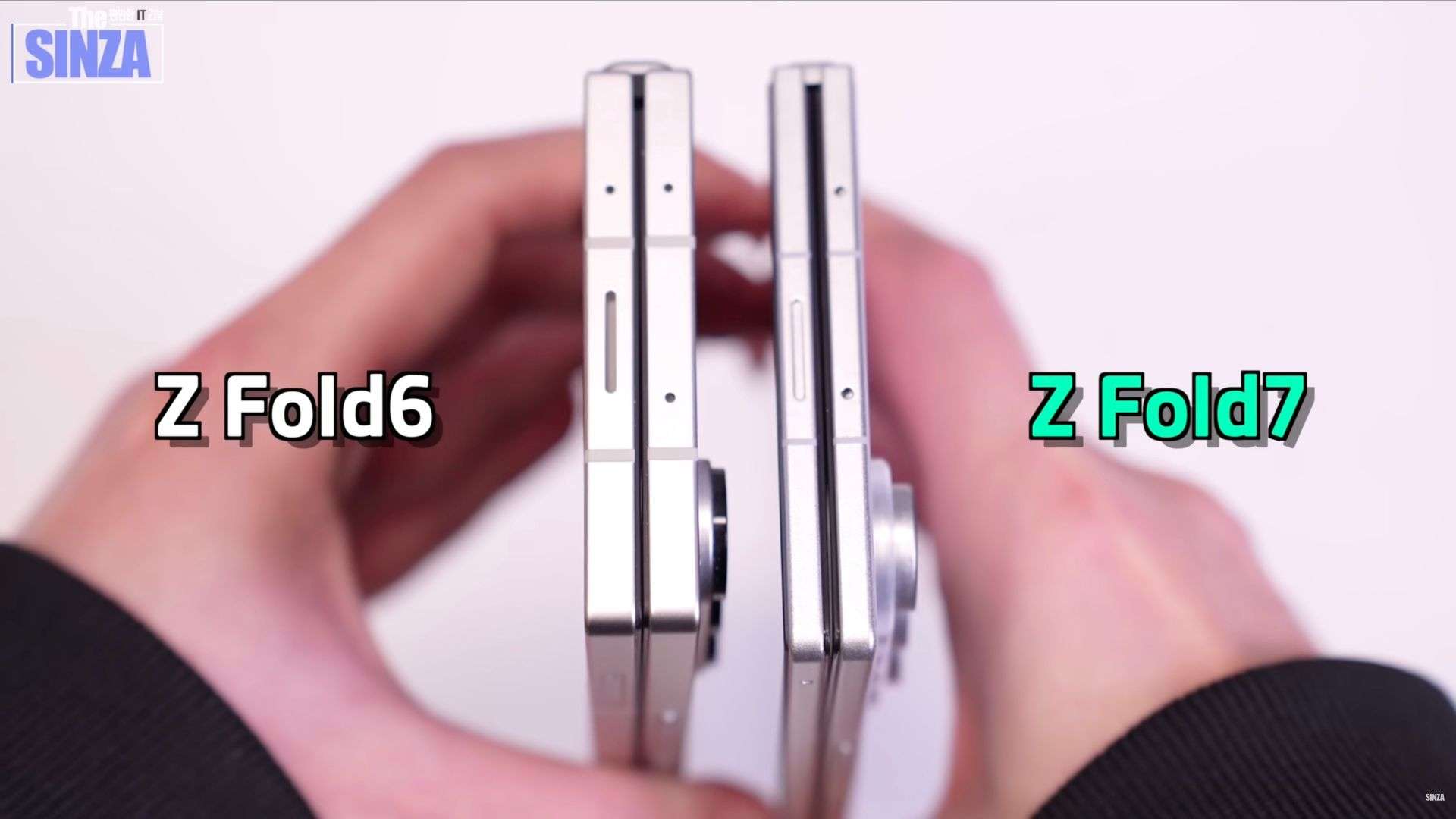 Một trong những điểm nhấn lớn nhất của Galaxy Z Fold 7 chính là độ mỏng ấn tượng. Theo video trên tay từ TheSINZA, mô hình dummy của chiếc điện thoại này chỉ dày 4.5mm khi mở ra và 9mm khi gập lại. So sánh với Galaxy Z Fold 6 (dày 5.6mm khi mở và 12.1mm khi gập), sự khác biệt là rõ rệt. Thậm chí, khi đặt cạnh Galaxy Z Fold Special Edition – mẫu điện thoại gập mỏng nhất của Samsung trước đây (4.9mm khi mở, 10.6mm khi gập), Galaxy Z Fold 7 vẫn vượt trội hơn với độ mỏng giảm thêm lần lượt 0.4mm và 1.6mm.