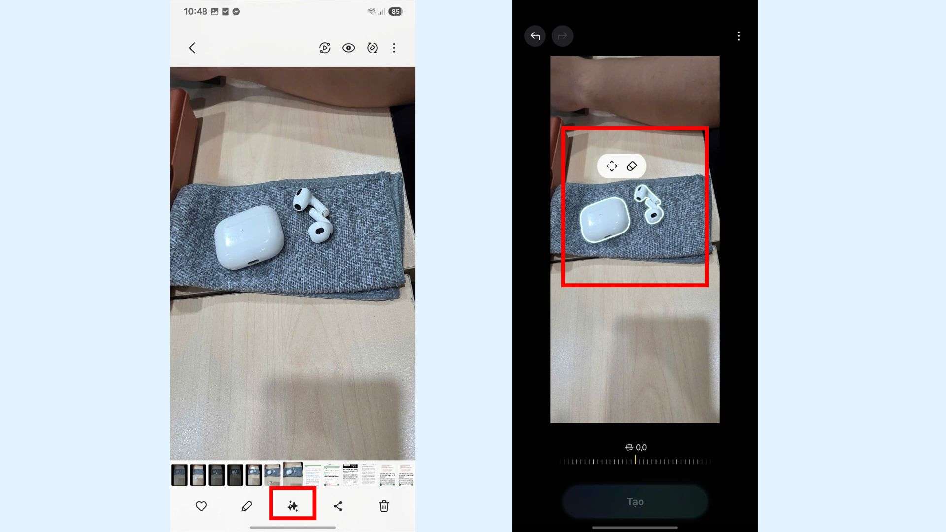 Đầu tiên là Vào mục hình ảnh, chọn bức ảnh cần chỉnh sửa, sau đó nhấn vào biểu tượng Galaxy AI. Chọn đối tượng trong bức ảnh cần xóa, di chuyển hoặc thay đổi kích cỡ