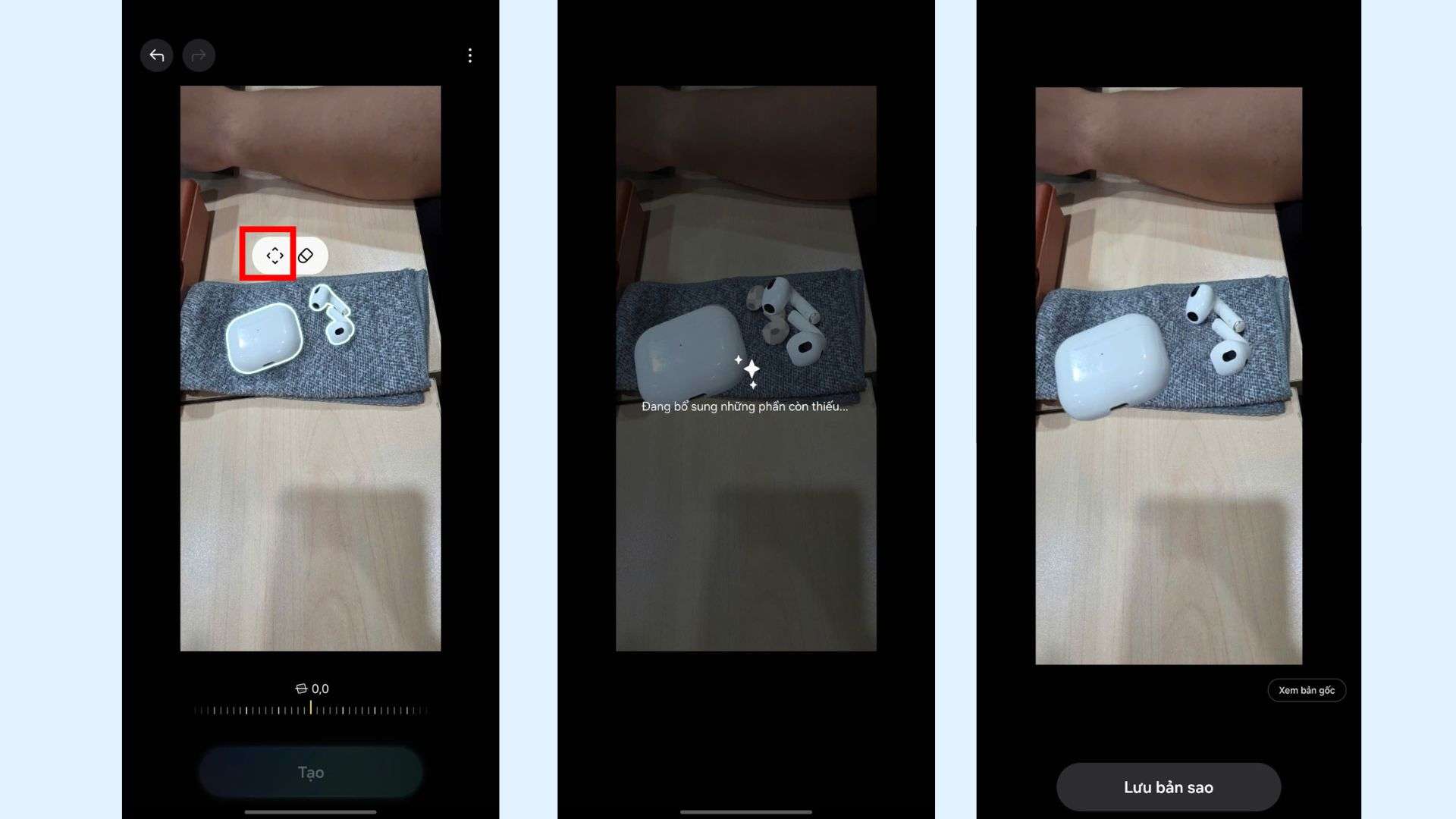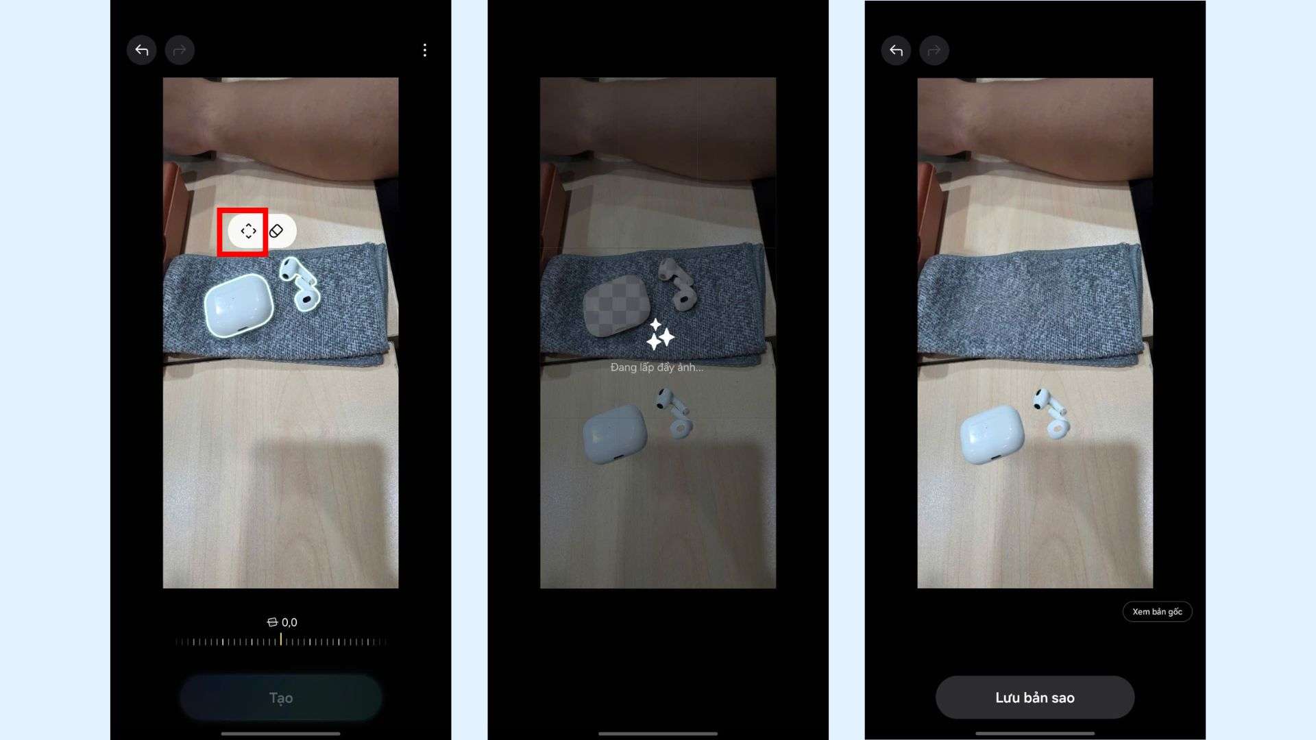 - Thay đổi kích thước đối tượng: Chọn nút tác vụ di chuyển, zoom vật thể to ra hoặc nhỏ lại theo kích thước mong muốn, nhấn nút Tạo.