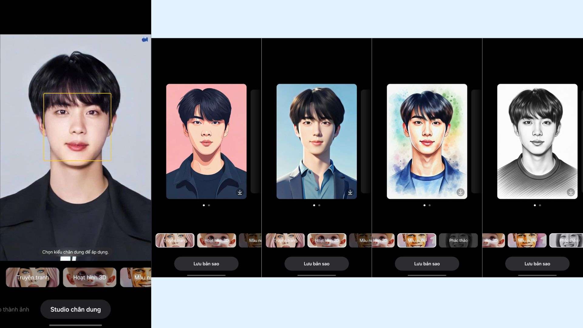 Studio chân dung trên Galaxy S25 Series mang đến trải nghiệm chỉnh sửa ảnh chân dung độc đáo và sáng tạo. Với tính năng này, người dùng có thể dễ dàng biến những bức ảnh chân dung thông thường thành các tác phẩm nghệ thuật mang phong cách vẽ đa dạng như truyện tranh, hoạt hình 3D, màu nước hoặc phác thảo. Chỉ với vài thao tác đơn giản, AI sẽ tự động phân tích và áp dụng các hiệu ứng phù hợp