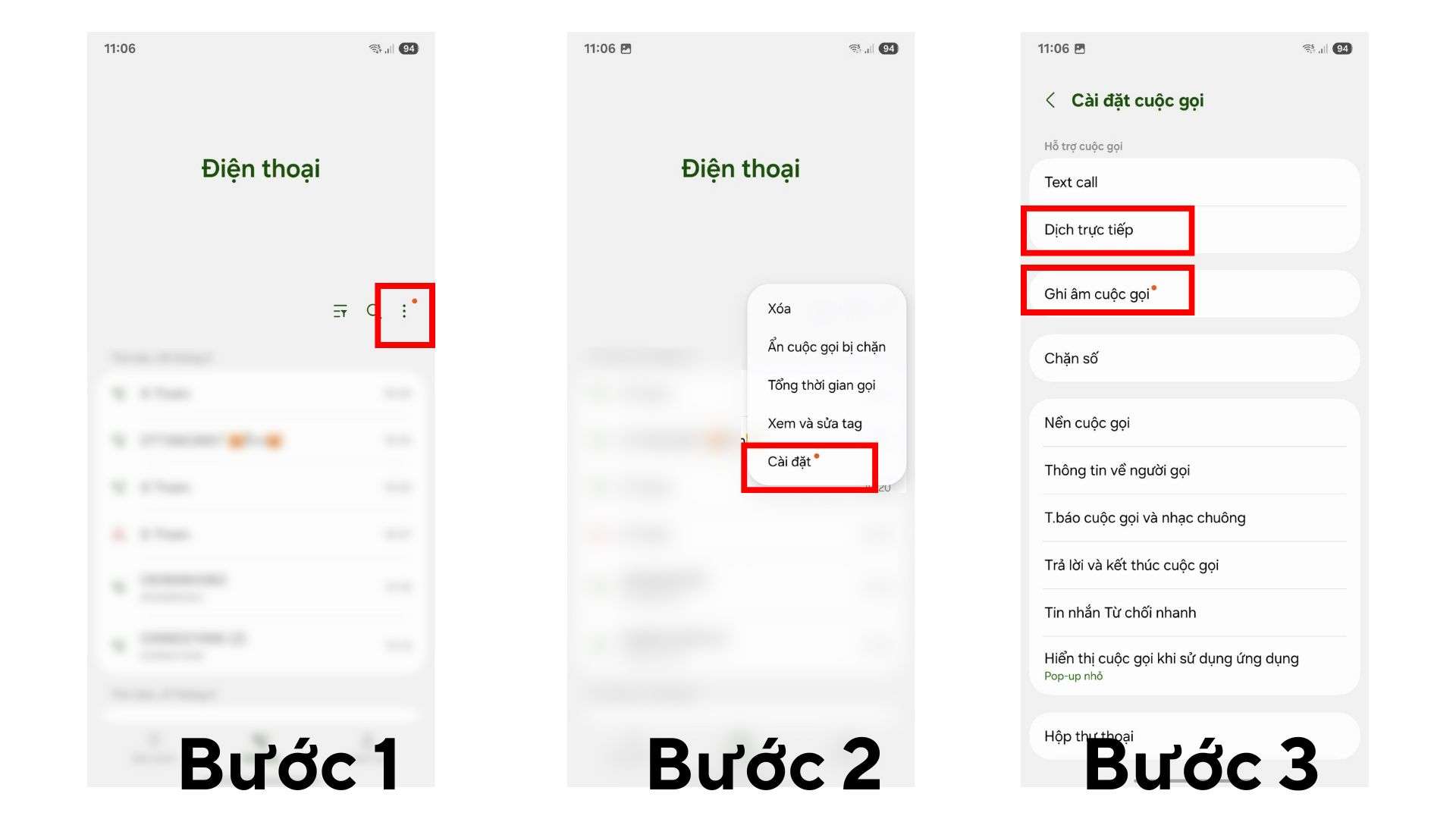 - Bước 1: Truy cập vào ứng dụng gọi điện mặc định trên điện thoại.