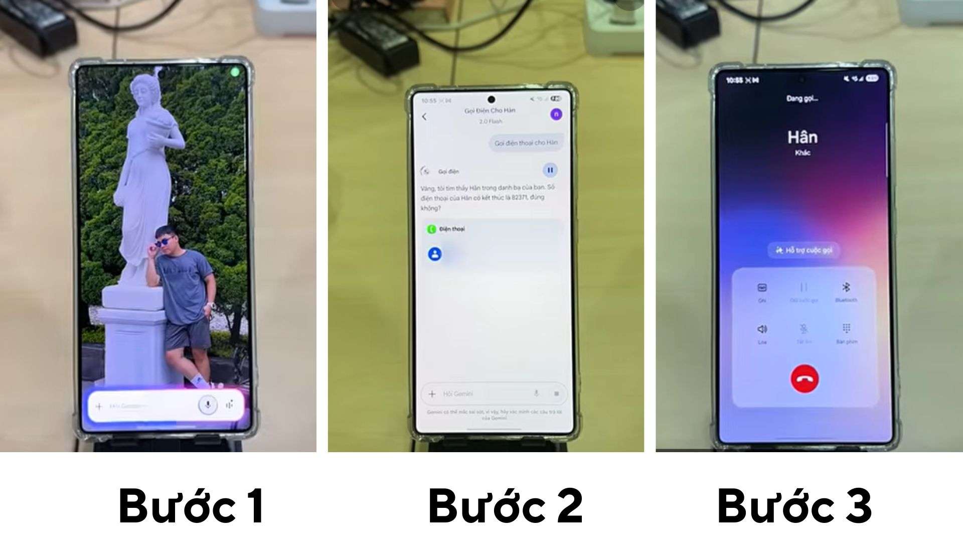 - Bước 3: AI sẽ tự động tìm kiếm và đưa ra thông báo thực hiện cuộc gọi, sau đó chỉ cần ra lệnh “gọi” cuộc gọi sẽ được thực hiện.