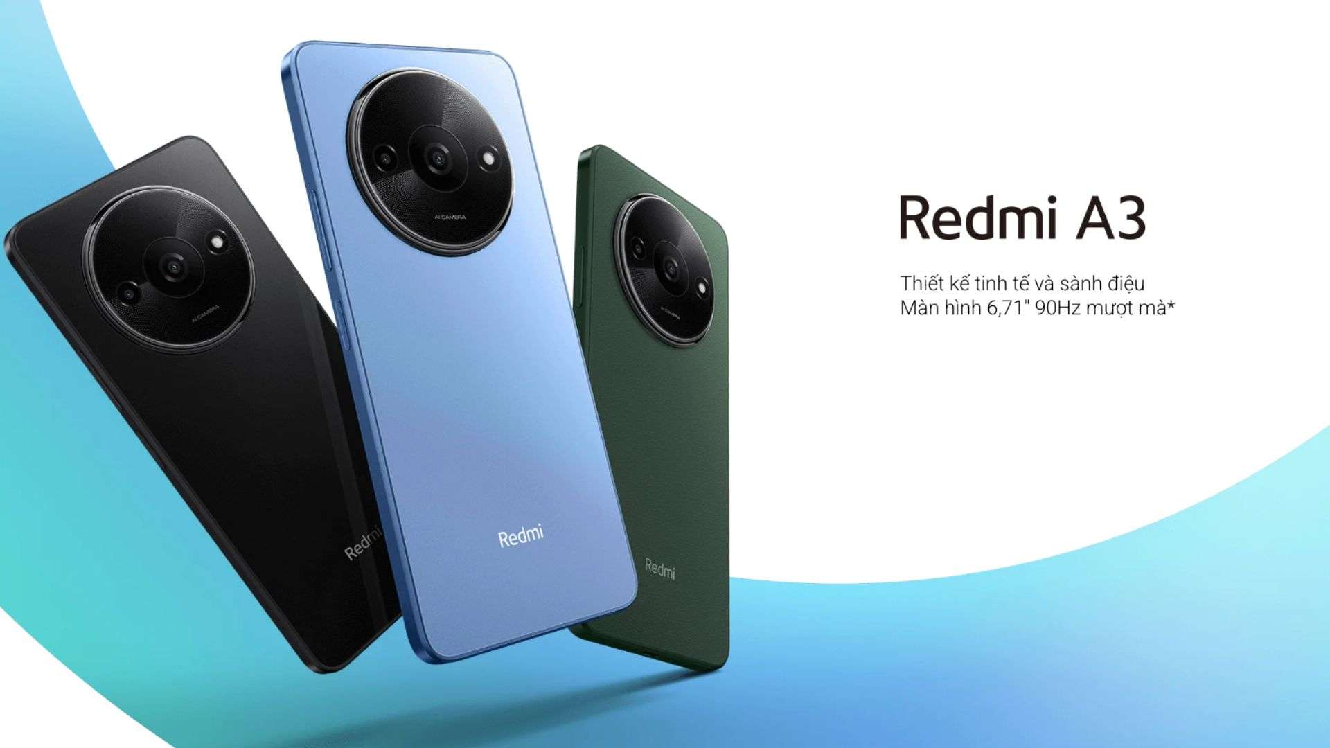 Redmi A3 sở hữu màn hình HD+ với độ sáng cao, đủ để sử dụng ngoài trời. Máy được thiết kế hiện đại với nhiều màu sắc trẻ trung. Viên pin dung lượng lớn giúp người dùng yên tâm khi sử dụng cả ngày mà không lo hết pin.