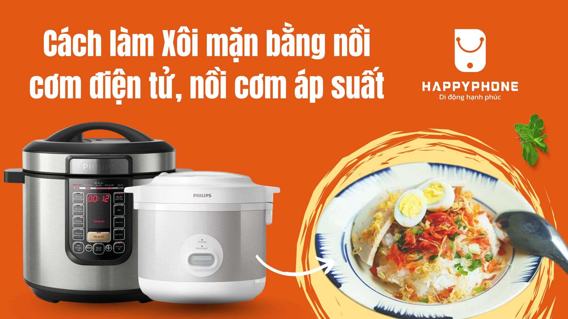 Cách làm Xôi mặn bằng nồi cơm điện tử, nồi cơm áp suất