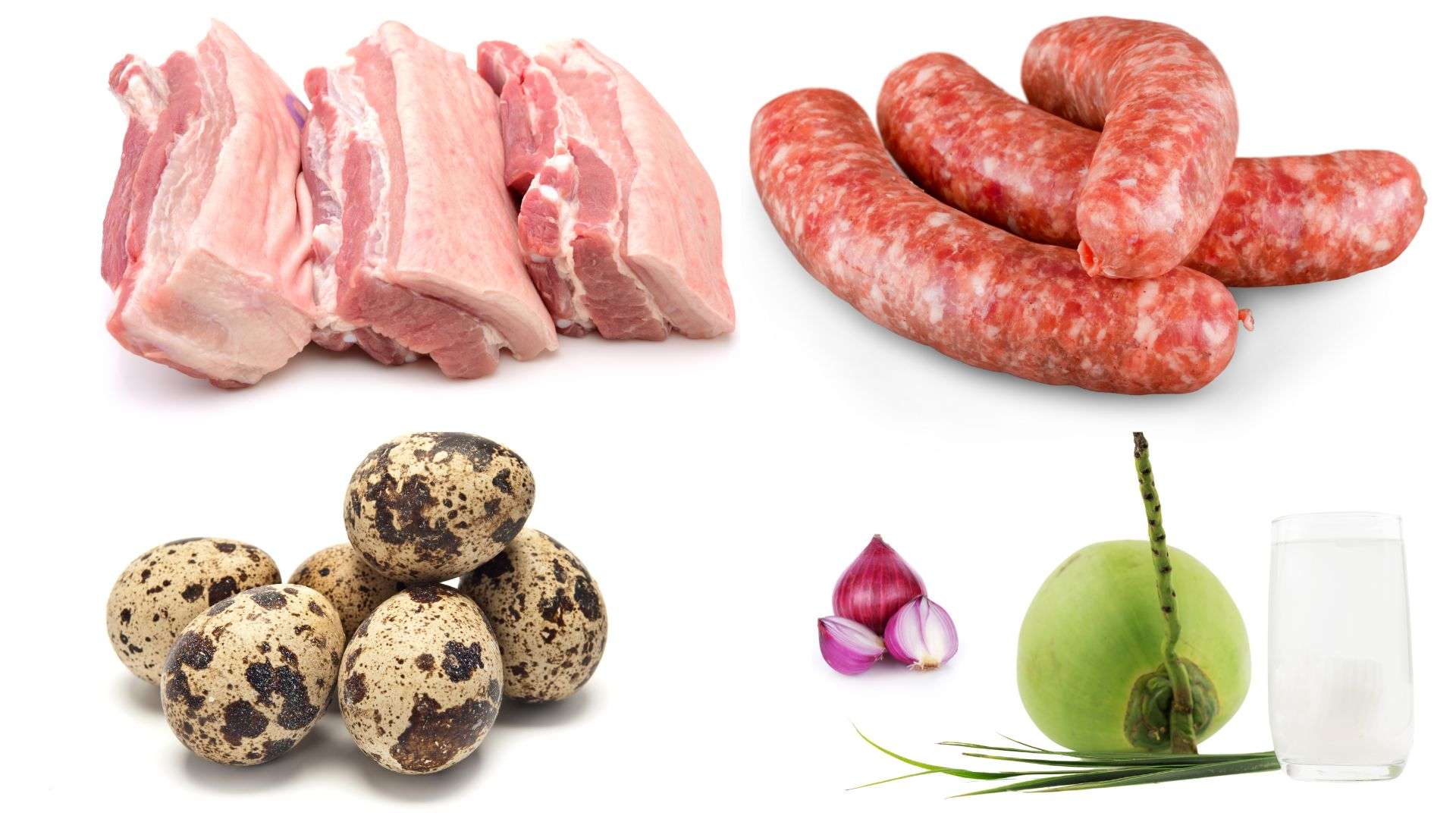 - Thịt heo: 200g (thịt ba chỉ hoặc thịt nạc vai)