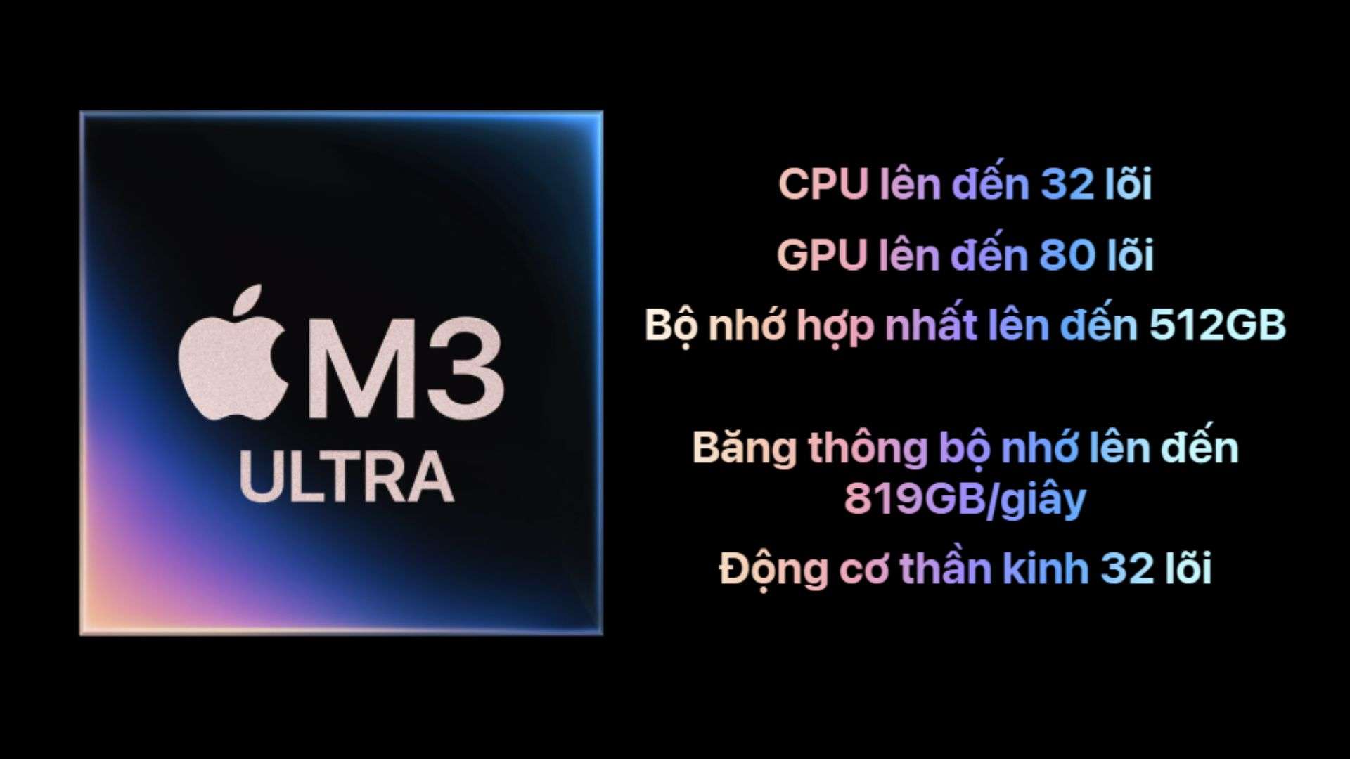 Sau nhiều năm cải tiến, Apple chính thức ra mắt M3 Ultra trên Mac Sutdio, đây là con chip mạnh mẽ nhất từng xuất hiện trên Mac. Với sức mạnh nhanh hơn đến 2,6 lần so với M1 Ultra, hỗ trợ Thunderbolt 5, bộ nhớ thống nhất hơn nửa terabyte, và khả năng xử lý AI, đồ họa, và hiệu ứng hình ảnh vượt trội, M3 Ultra không chỉ là một bước tiến lớn của Apple mà còn định hình lại tiêu chuẩn của máy tính cá nhân cao cấp.