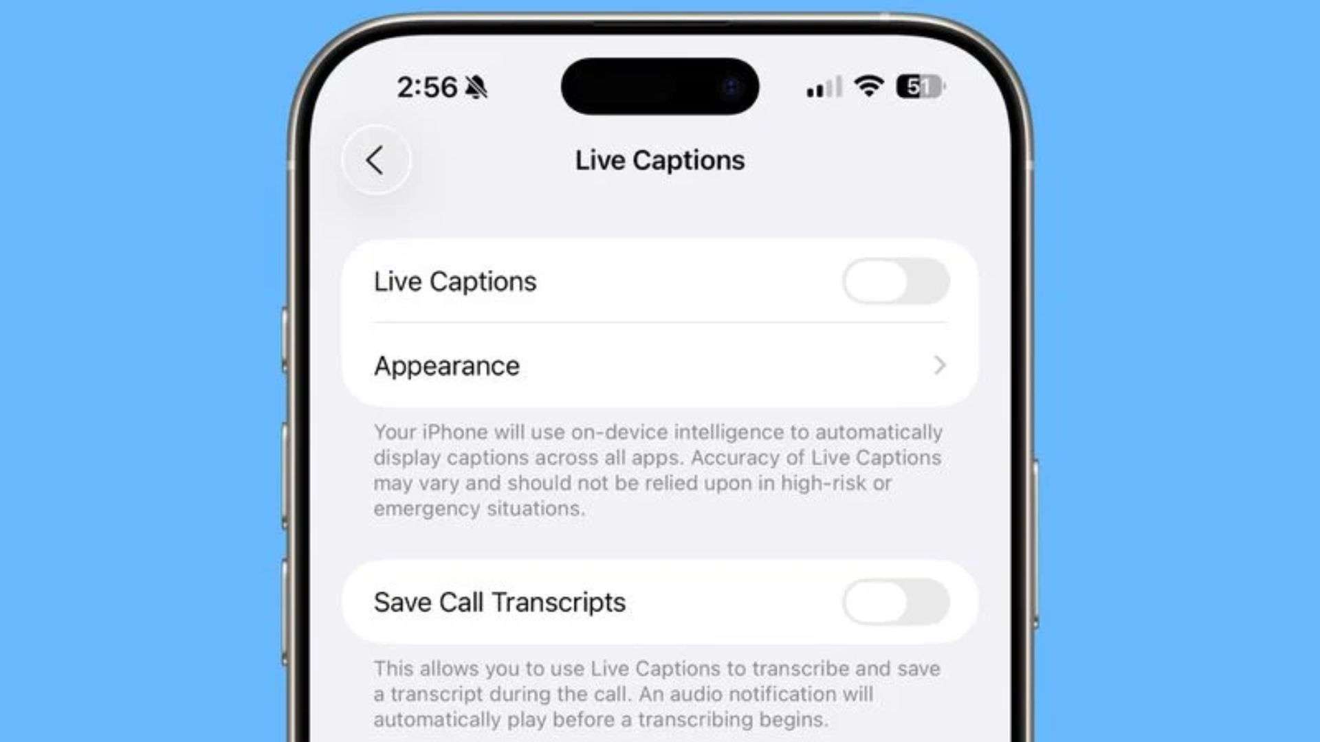 Tính năng Live Captions trong iOS 26 Beta 2 đã được tinh chỉnh. Cụ thể, tùy chọn Transcribe Calls giờ đây được đổi tên thành Save Call Transcripts. Ngoài ra, Apple bổ sung âm báo để thông báo cho người tham gia cuộc gọi trước khi quá trình ghi âm và chuyển đổi văn bản bắt đầu, tăng tính minh bạch.