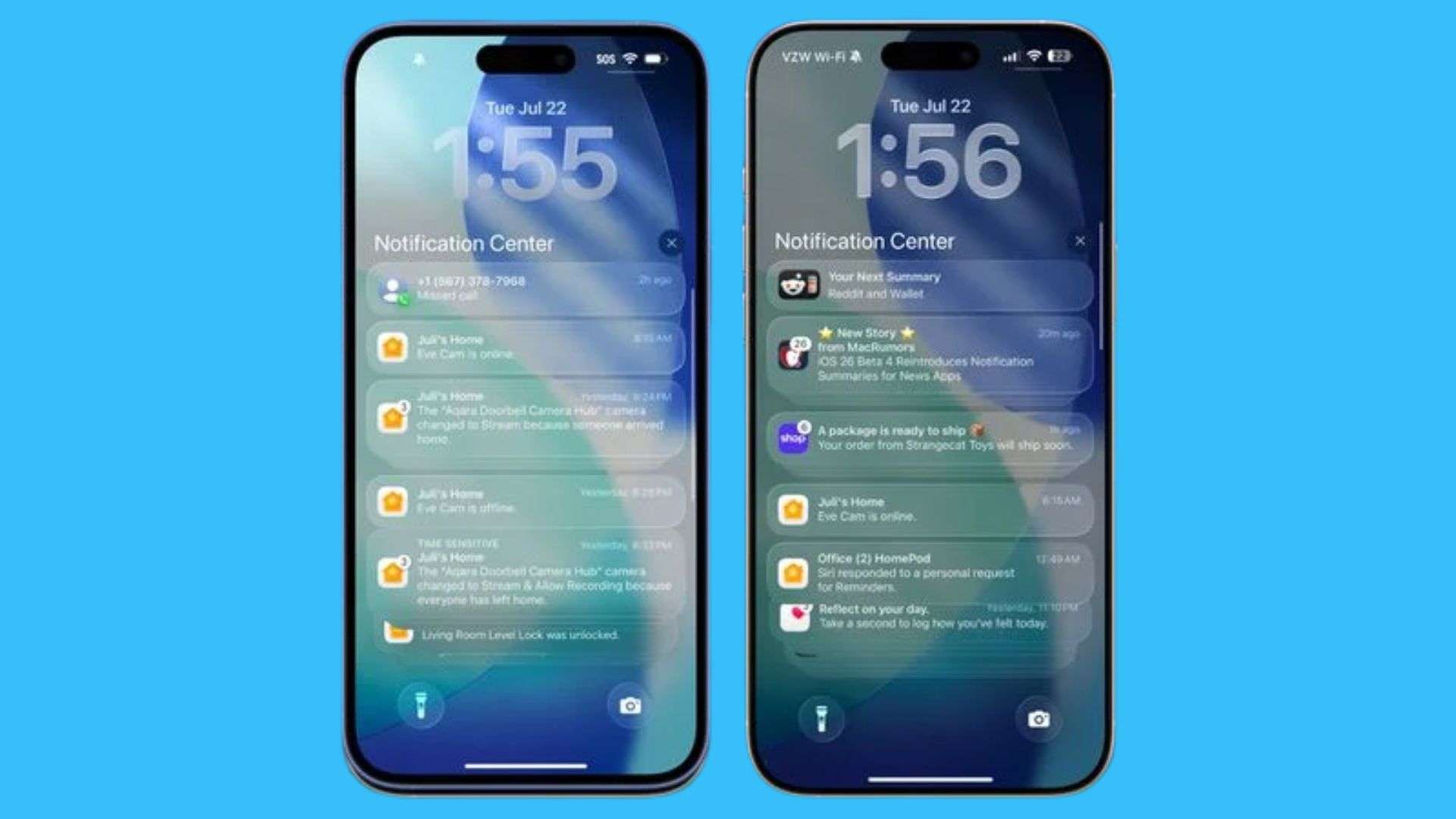 Một trong những điểm nhấn của iOS 26 Beta 4 là sự trở lại của tính năng Tóm tắt thông báo (Notification Summaries) cho các ứng dụng tin tức và giải trí, được hỗ trợ bởi Apple Intelligence. Tính năng này từng bị tạm dừng trong bản cập nhật iOS 18.3 vào tháng 1/2025 do một số lỗi liên quan đến việc tóm tắt sai nội dung tin tức.