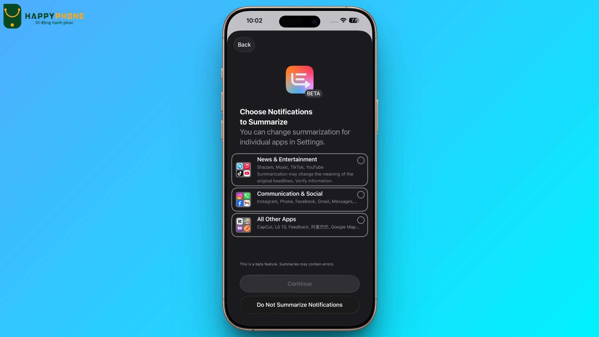 Giờ đây, Apple đã cải thiện tính năng này, đảm bảo tóm tắt chính xác hơn. Các thông báo được tạo bởi Apple Intelligence sẽ được in nghiêng và kèm chú thích “Tóm tắt bởi Apple Intelligence” để người dùng dễ nhận biết. Sau khi cập nhật, người dùng sẽ thấy một cửa sổ bật lên cho phép bật hoặc tắt tính năng tóm tắt theo danh mục ứng dụng. Đây là một bước tiến để giúp người dùng quản lý thông báo hiệu quả hơn.