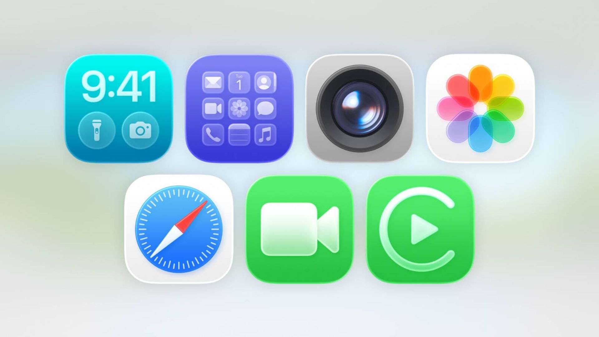 Hàng loạt ứng dụng như Camera, Photos, Safari, FaceTime và Apple Music được thiết kế lại trên iOS 26 để tận dụng Liquid Glass. Thanh điều hướng và công cụ giờ đây nổi lên như một lớp chức năng, giúp người dùng tập trung vào nội dung. Thanh tab thu nhỏ khi cuộn xuống và mở rộng khi cuộn lên, tạo trải nghiệm mượt mà. Biểu tượng ứng dụng sử dụng nhiều lớp Liquid Glass, hỗ trợ chế độ sáng, tối và tùy chọn “clear look” mới.