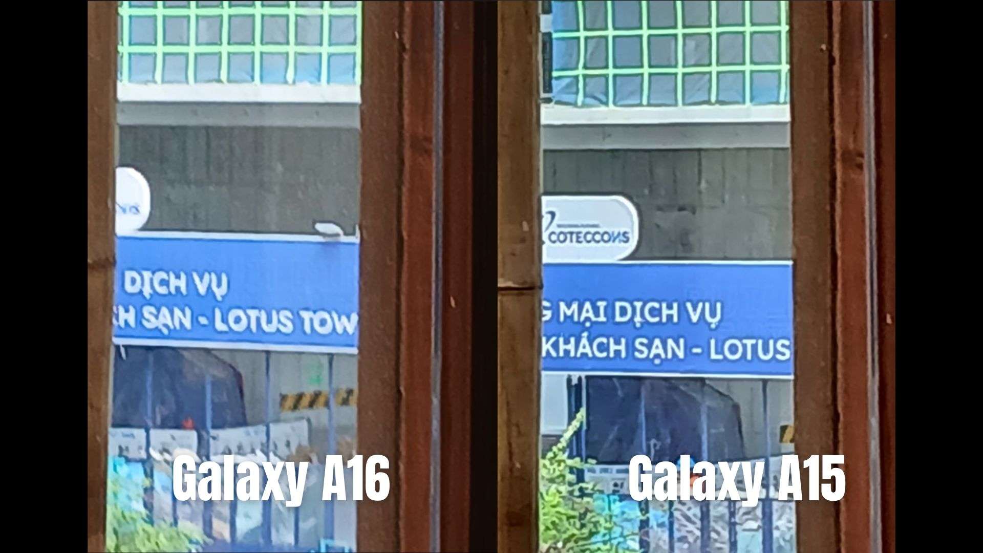 Dựa trên hình ảnh zoom 10x mà bạn cung cấp, Galaxy A15 cho độ nét tốt hơn Galaxy A16 khá rõ rệt. Các chi tiết chữ trên bảng hiệu của A15 nhìn sắc nét, dễ đọc hơn, màu sắc cũng giữ lại độ đậm và tươi.