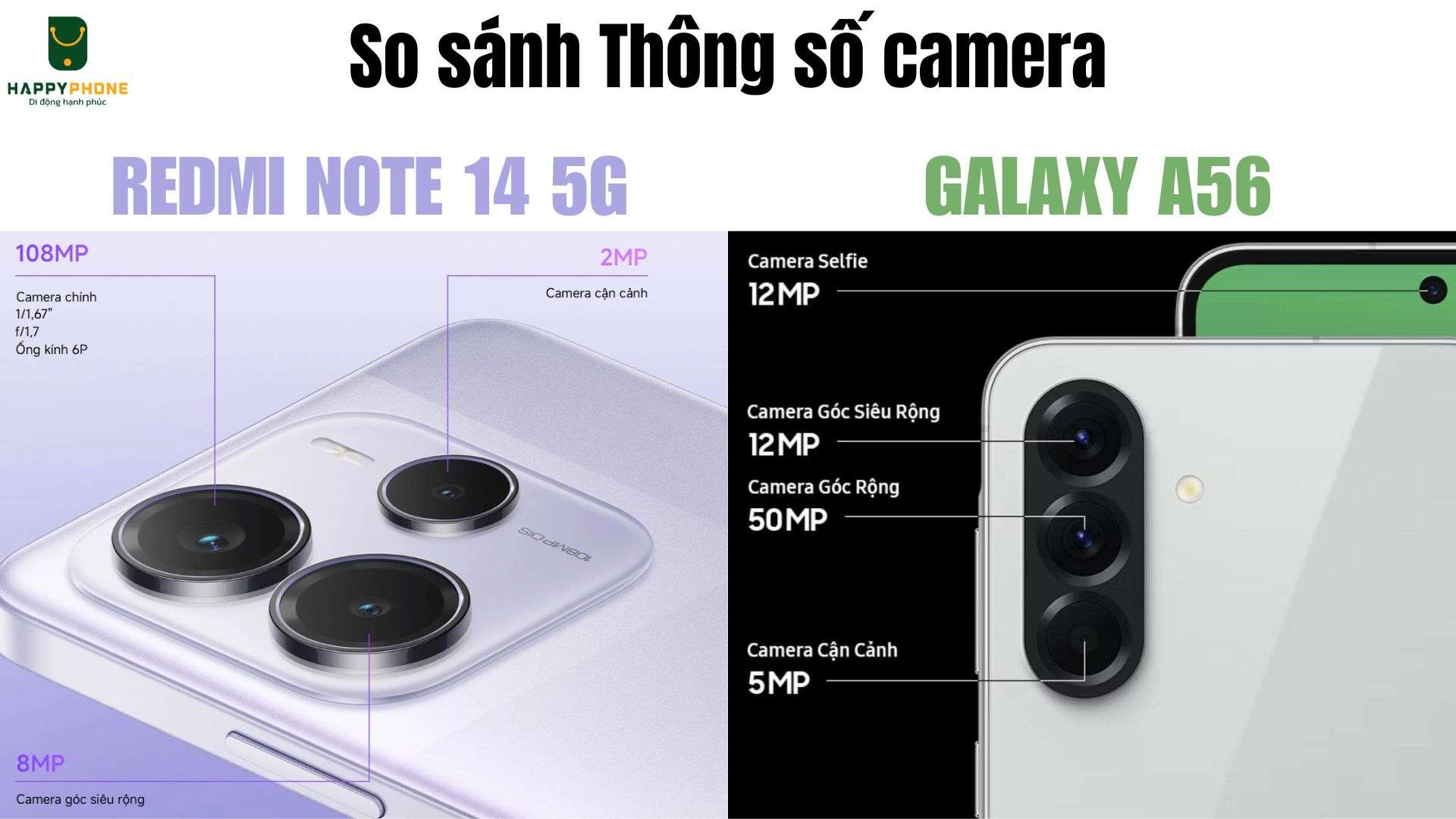 Thông số Camera Galaxy A56 và Redmi Note 14 5G