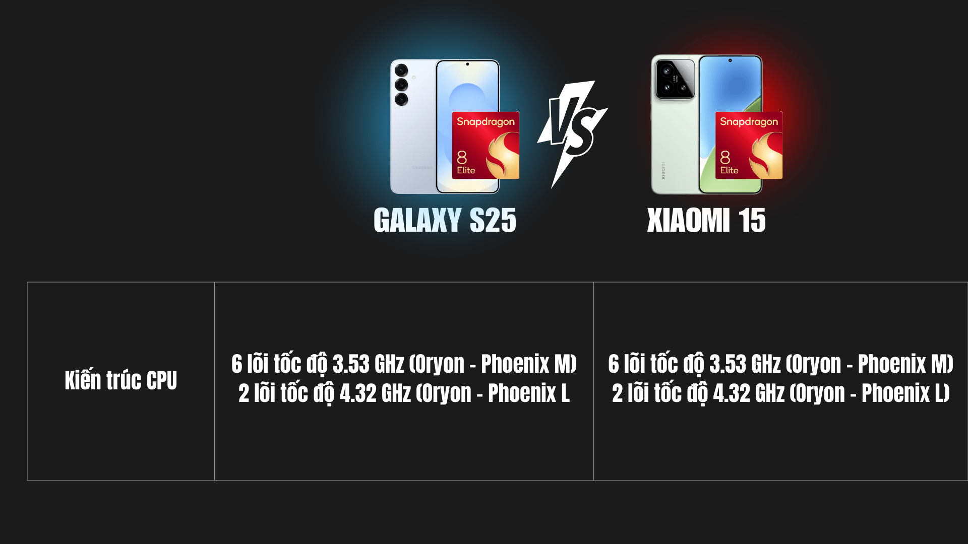 Bảng so sánh thông số chip Galaxy S25 và Xiaomi 15