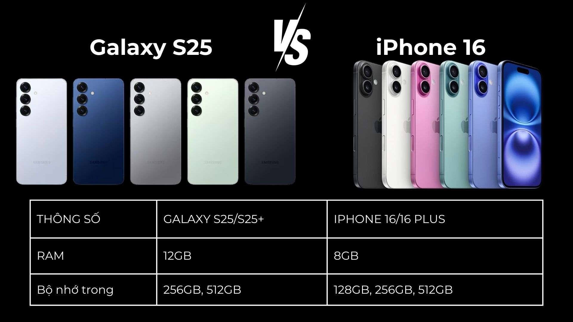 So sánh dung lượng Galaxy S25 và iPhone 16 Series