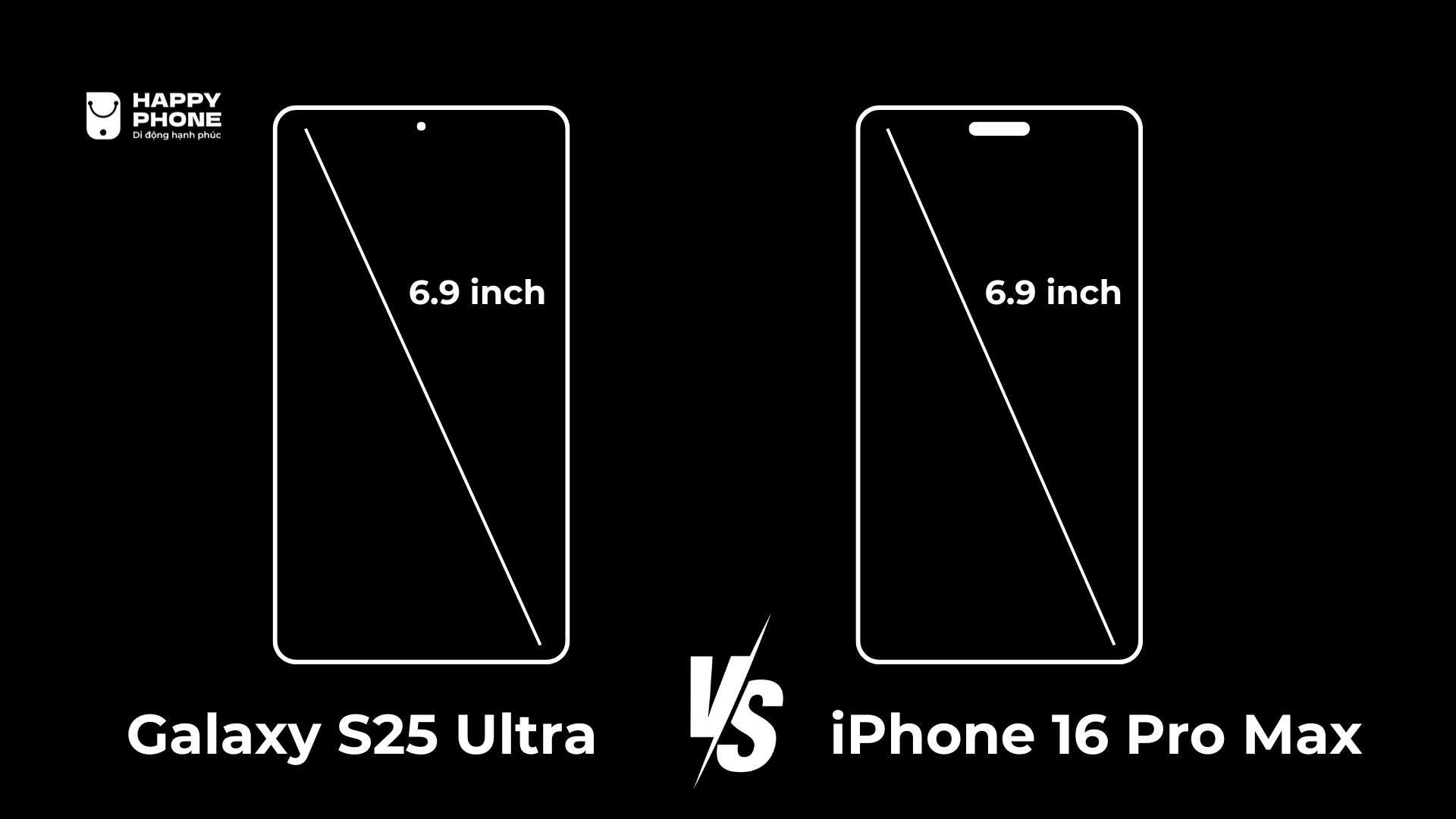 So sánh kích thước màn hình của Galaxy S25 Ultra và iPhone 16 Pro Max