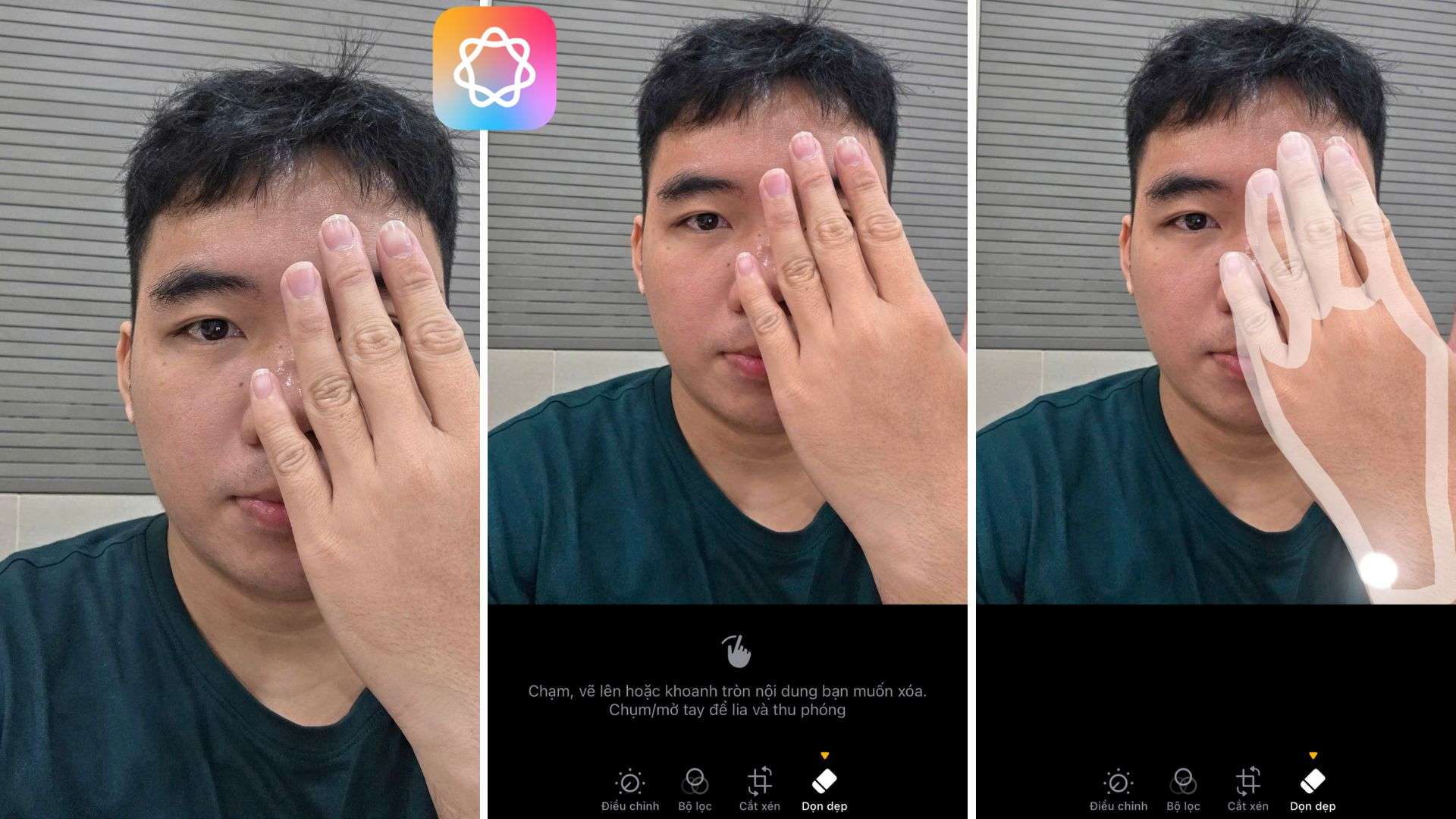 Xóa tay che nửa mặt