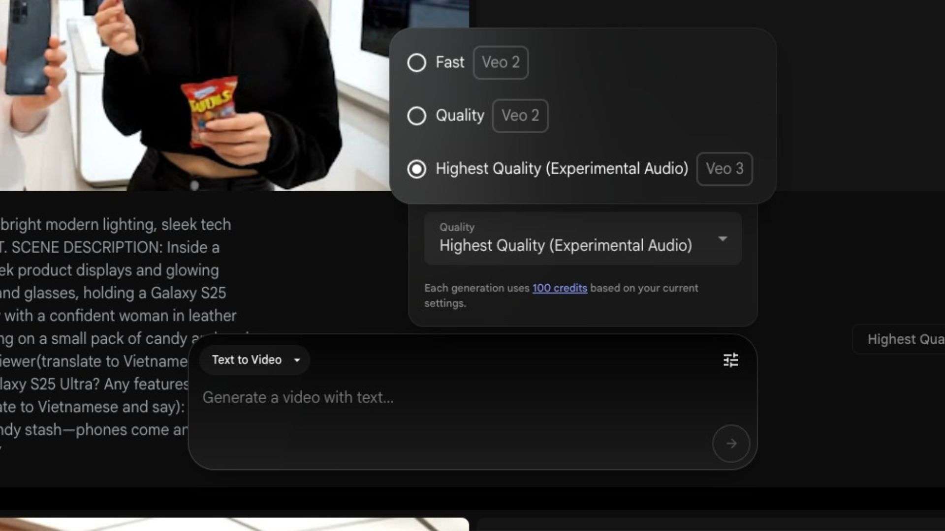 Lưu ý: Mỗi lần tạo video với Veo 3 tiêu tốn 100 tín dụng AI, trong khi Veo 2 tiêu tốn 10-100 tín dụng tùy thuộc vào chất lượng. Do đó, nếu người dùng muốn tạo nhiều video chất lượng cao, gói Ultra sẽ phù hợp hơn.