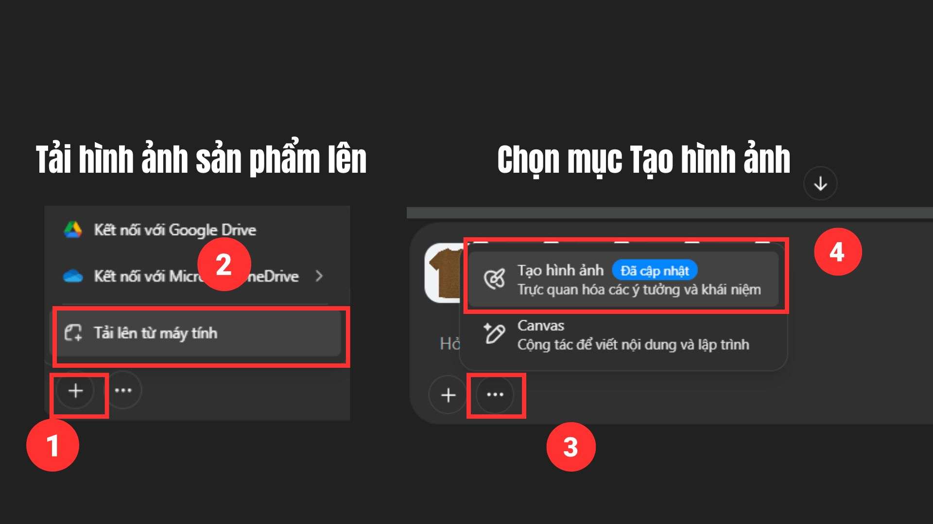 • Bước 3: Nhấn vào nút có dấu ba chấm (…) ở phía dưới bên phải. Nút này có thể chứa các tùy chọn bổ sung liên quan đến việc tạo hoặc quản lý hình ảnh trong mục “Chọn mục Tạo hình ảnh”.