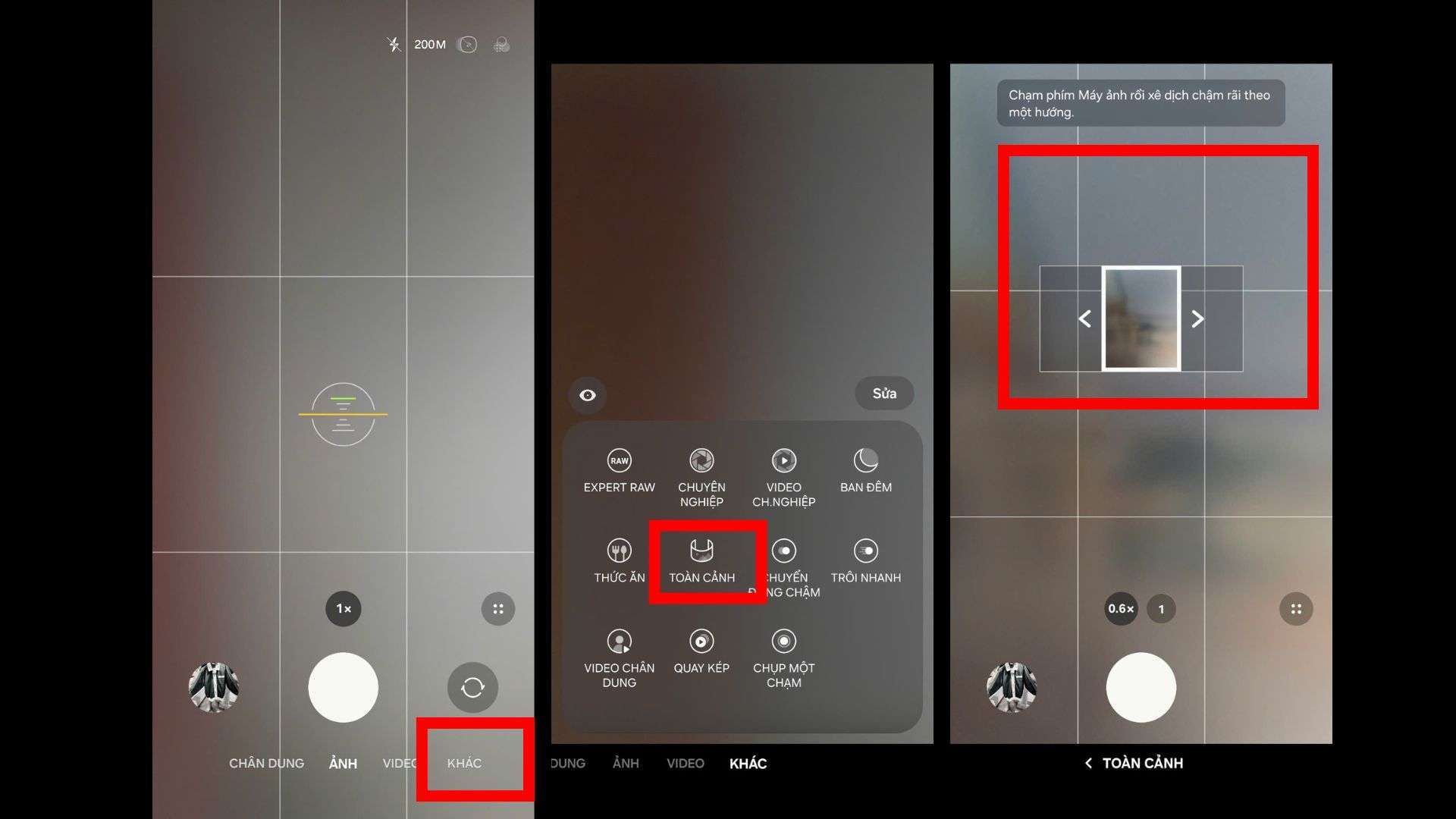 • Bước 3: Chọn chế độ chụp ảnh Toàn cảnh trên màn hình